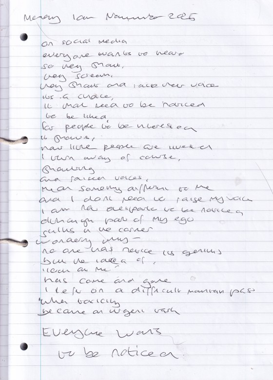 Everyone Would Like To Be Noticed – Written Monday 10th November 2025 (Aged 50)