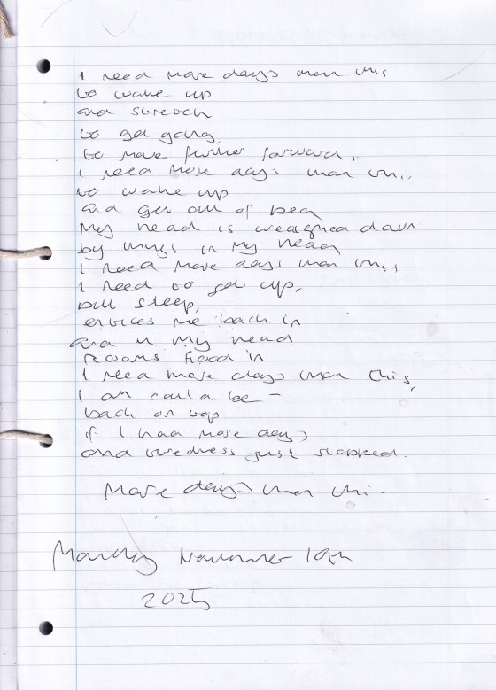 More Days Than This – Written Monday 10th November 2025 (Aged 50)