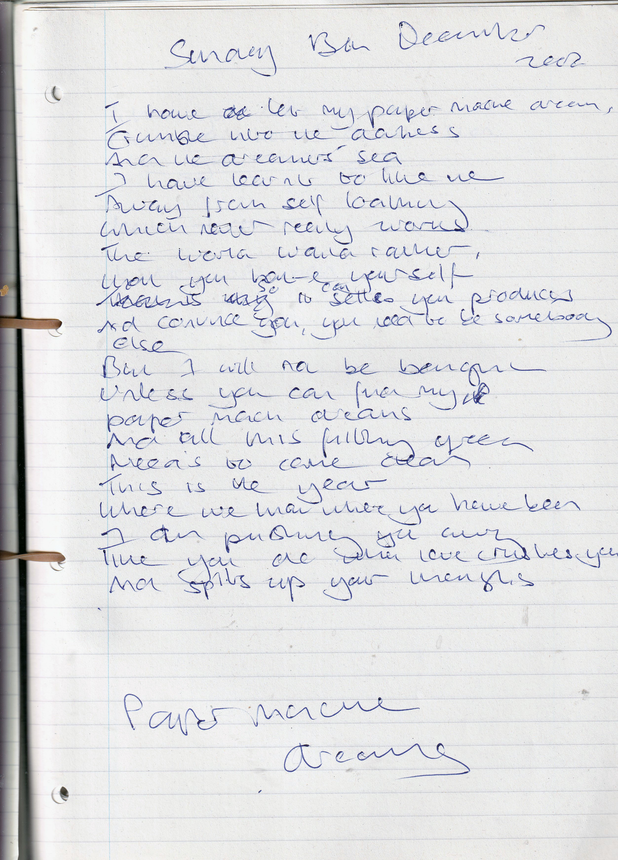 Paper Mache Dreams – Written Sunday 13th December 2008 (Aged 33)