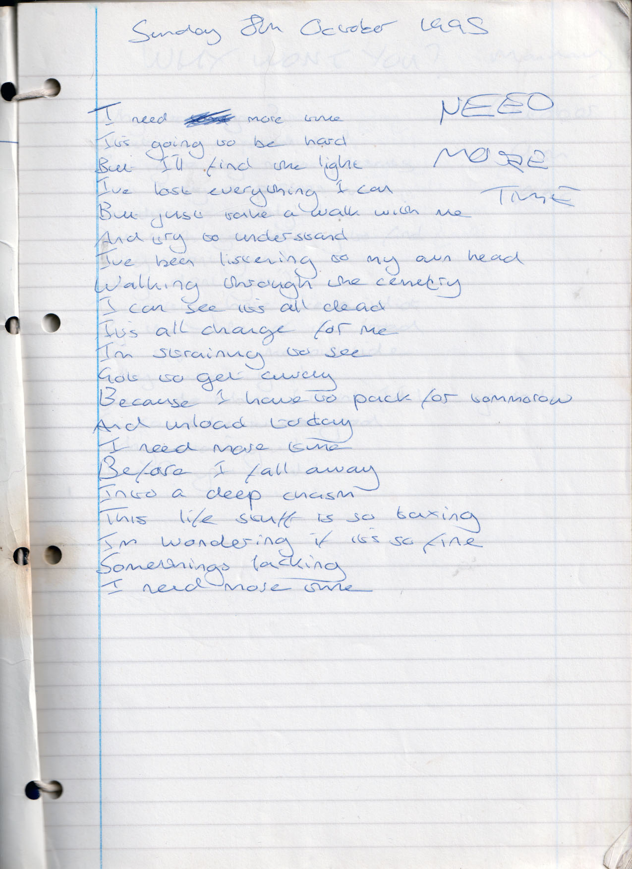 Need More Time – Written Sunday 8th October 1995 (aged 20)