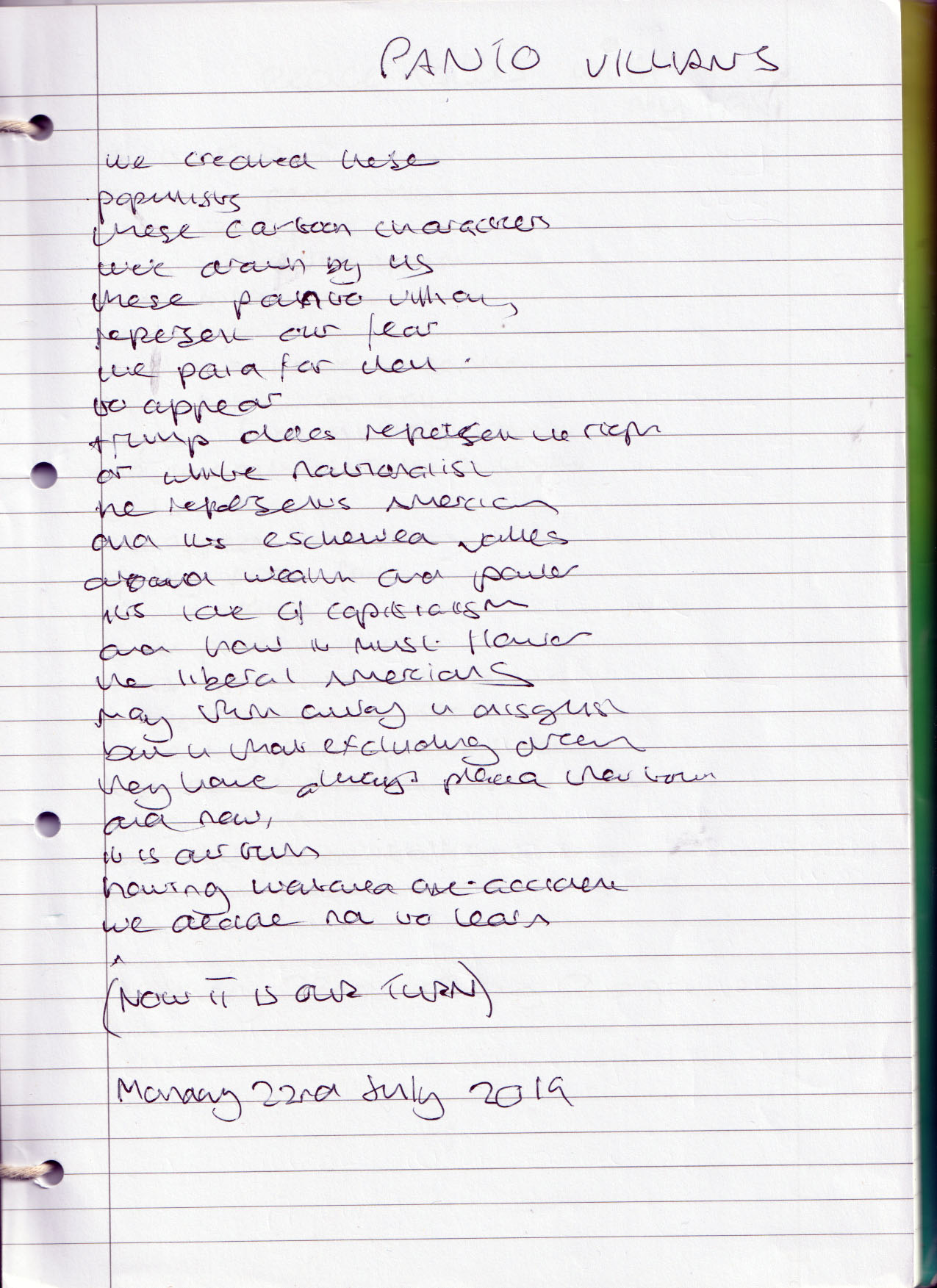 Panto Villains (Now It Is Our Turn) – Monday 22nd July 2019