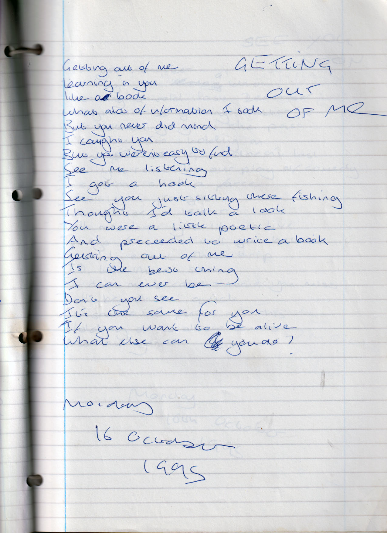 Getting Out of Me – Monday 16th October 1995
