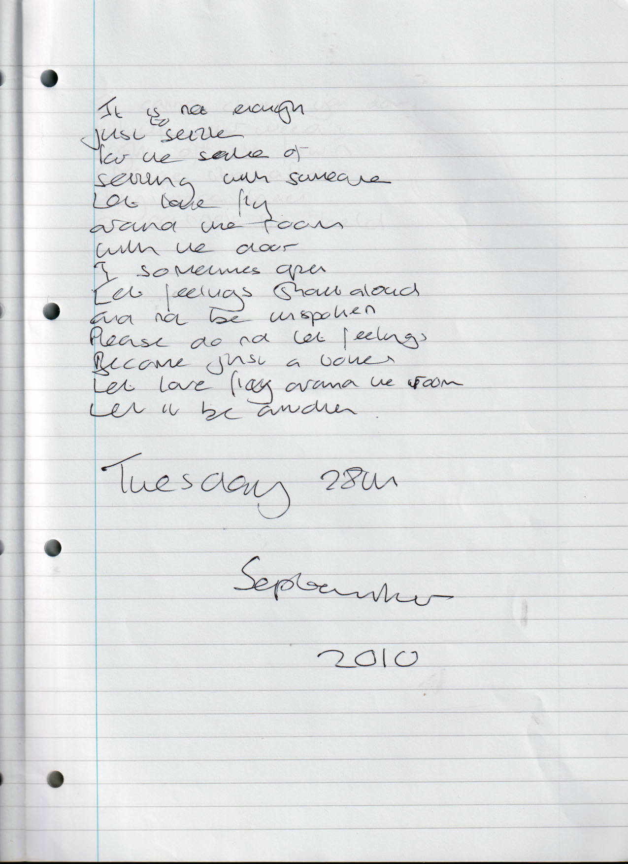 Let Love Fly Around the Room – Tuesday 28th September 2010