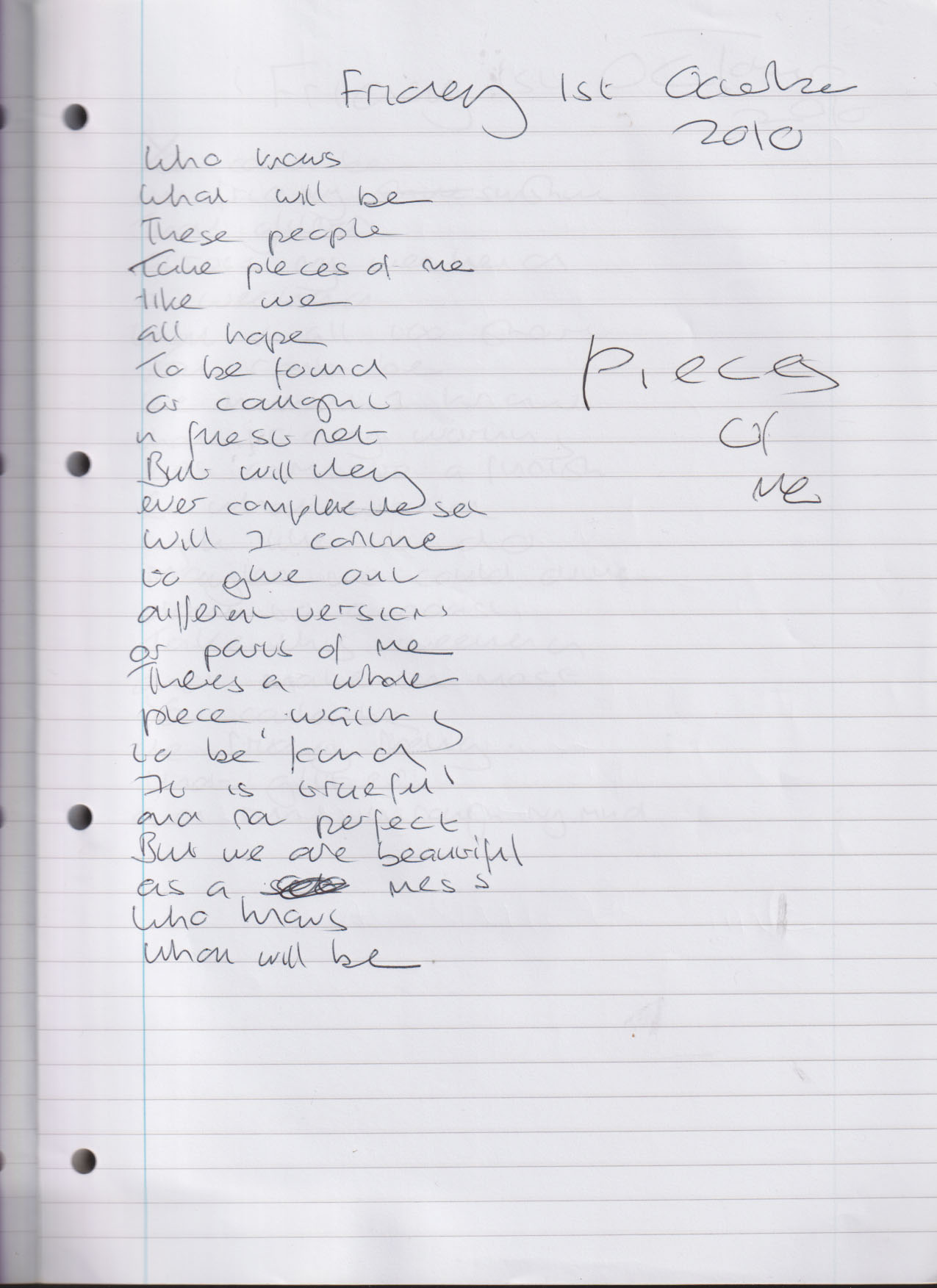 Pieces of Me – Friday 1st October 2010