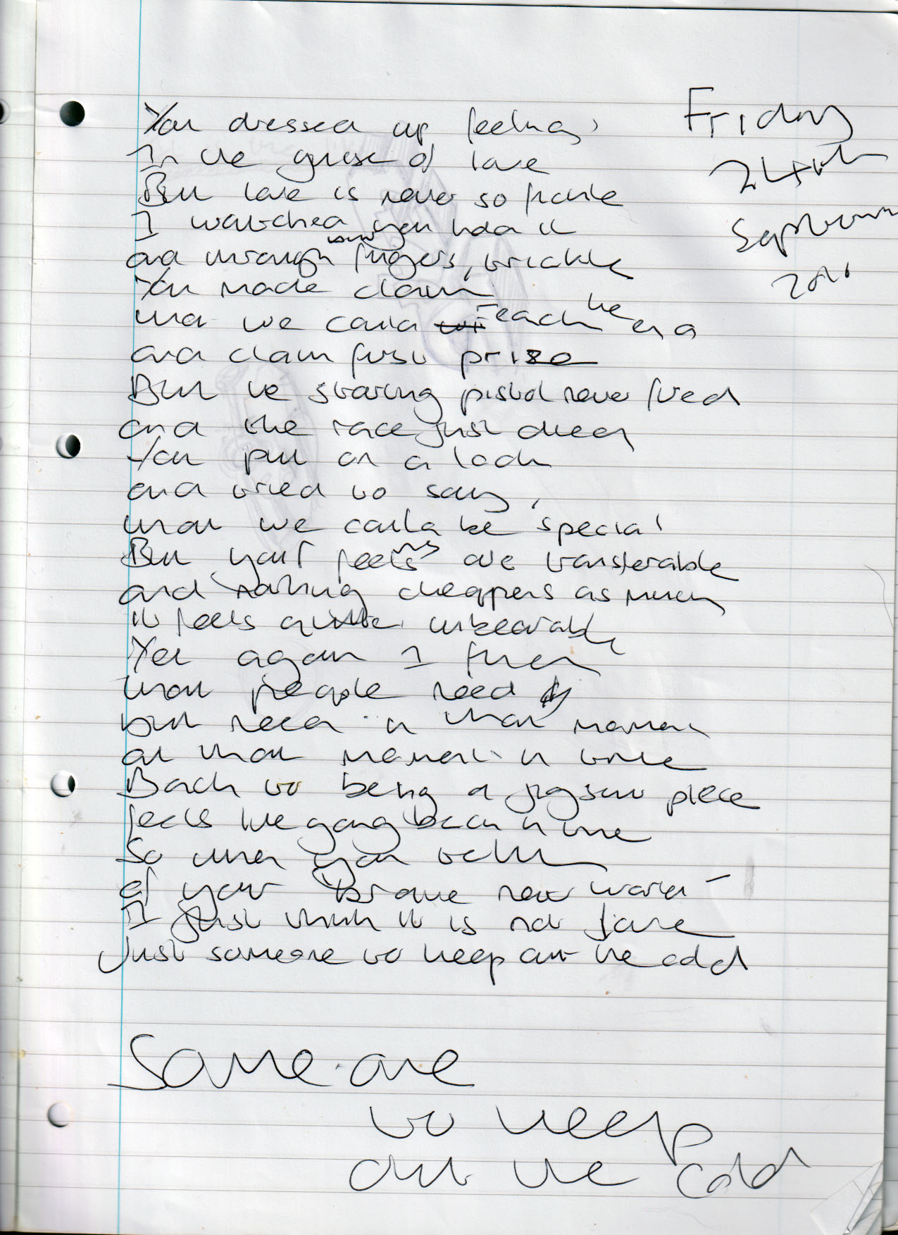 Someone to Keep Out the Cold – Friday 24th September 2010