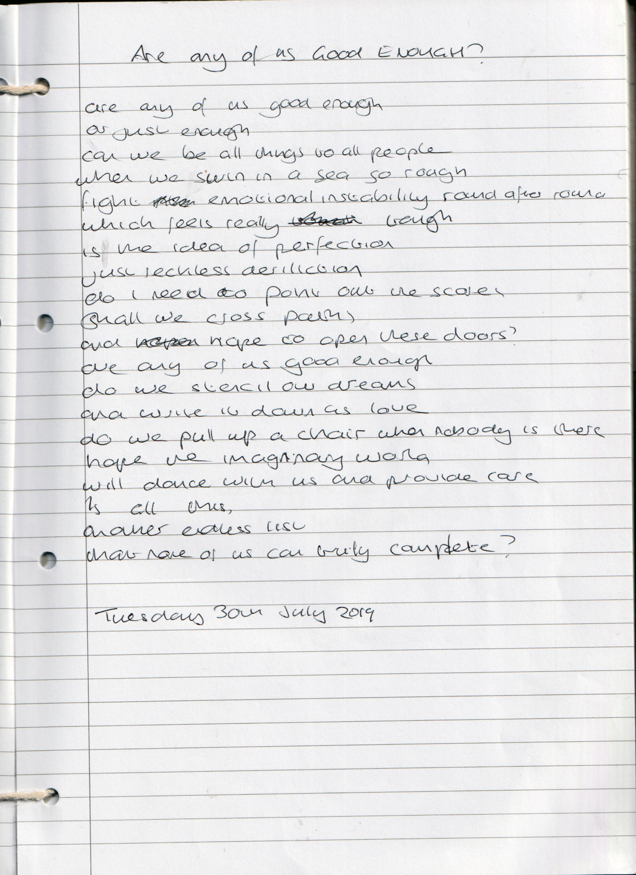 Are Any of us Good Enough? – Tuesday 30th July 2019