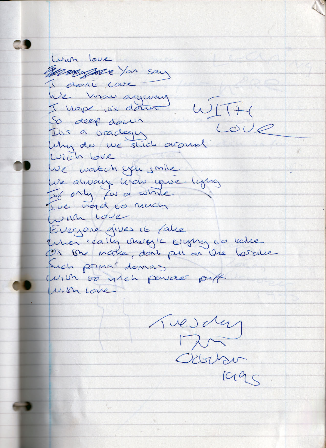 With Love – Tuesday 17th October 1995