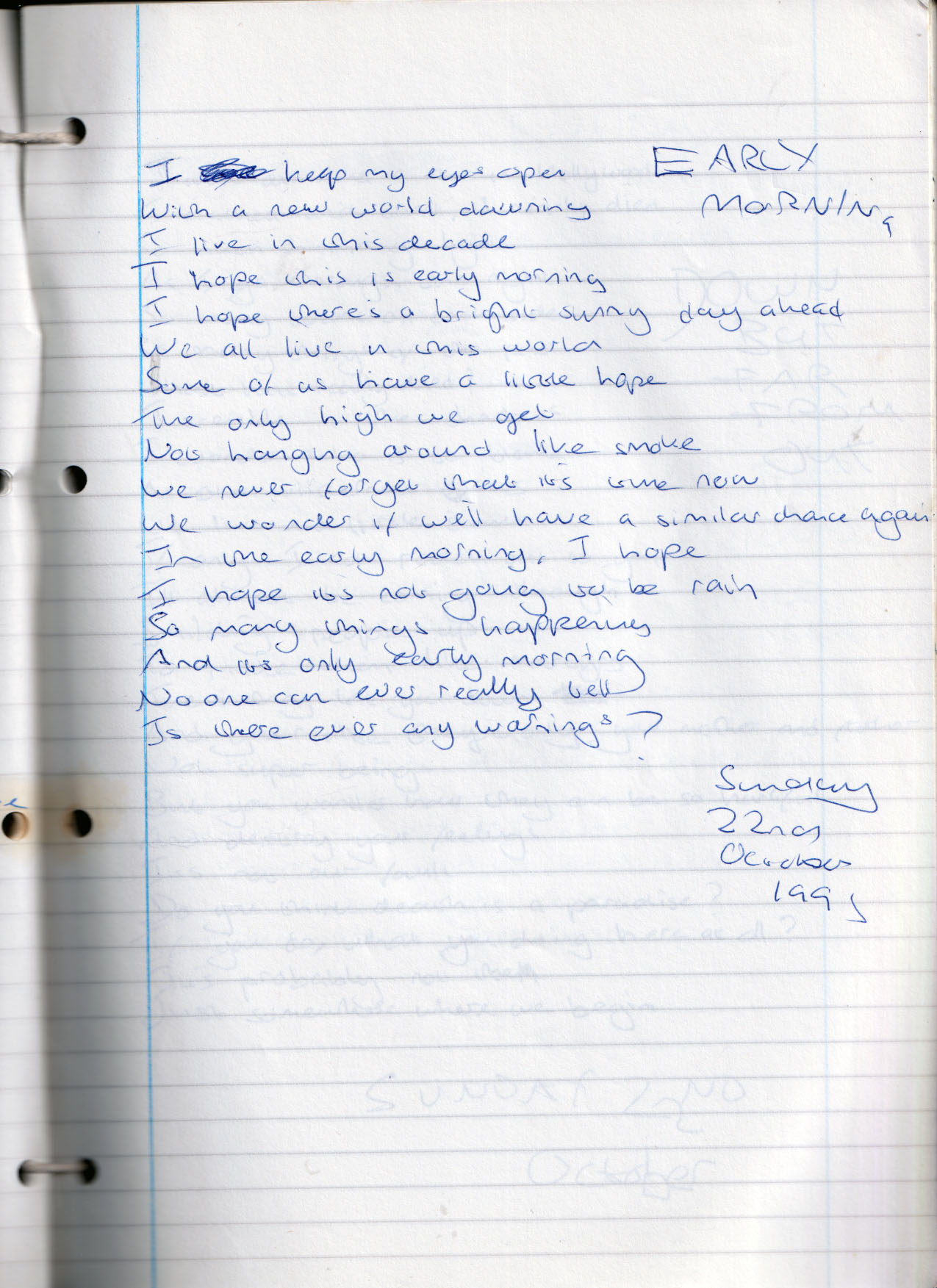 Early Morning – Sunday 22nd October 1995