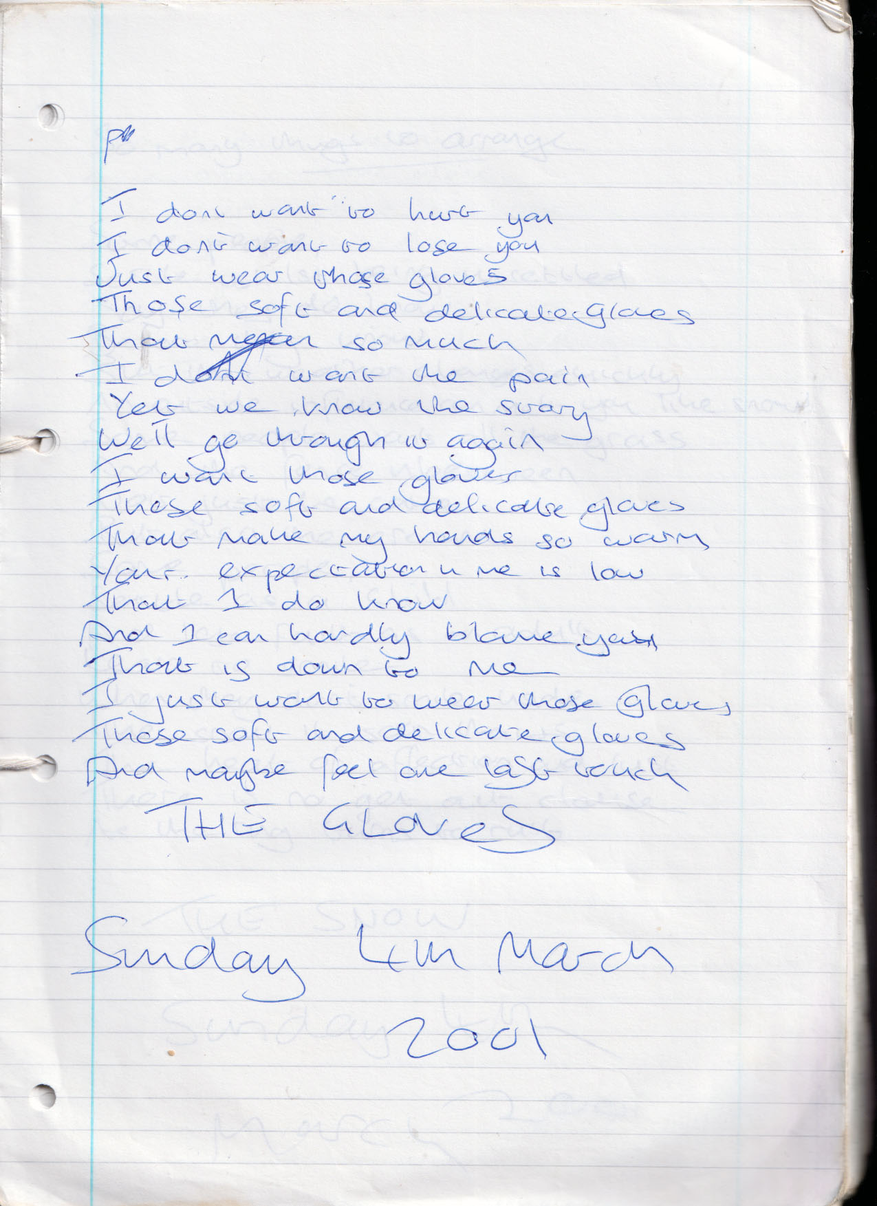 The Gloves – Sunday 4th March 2001