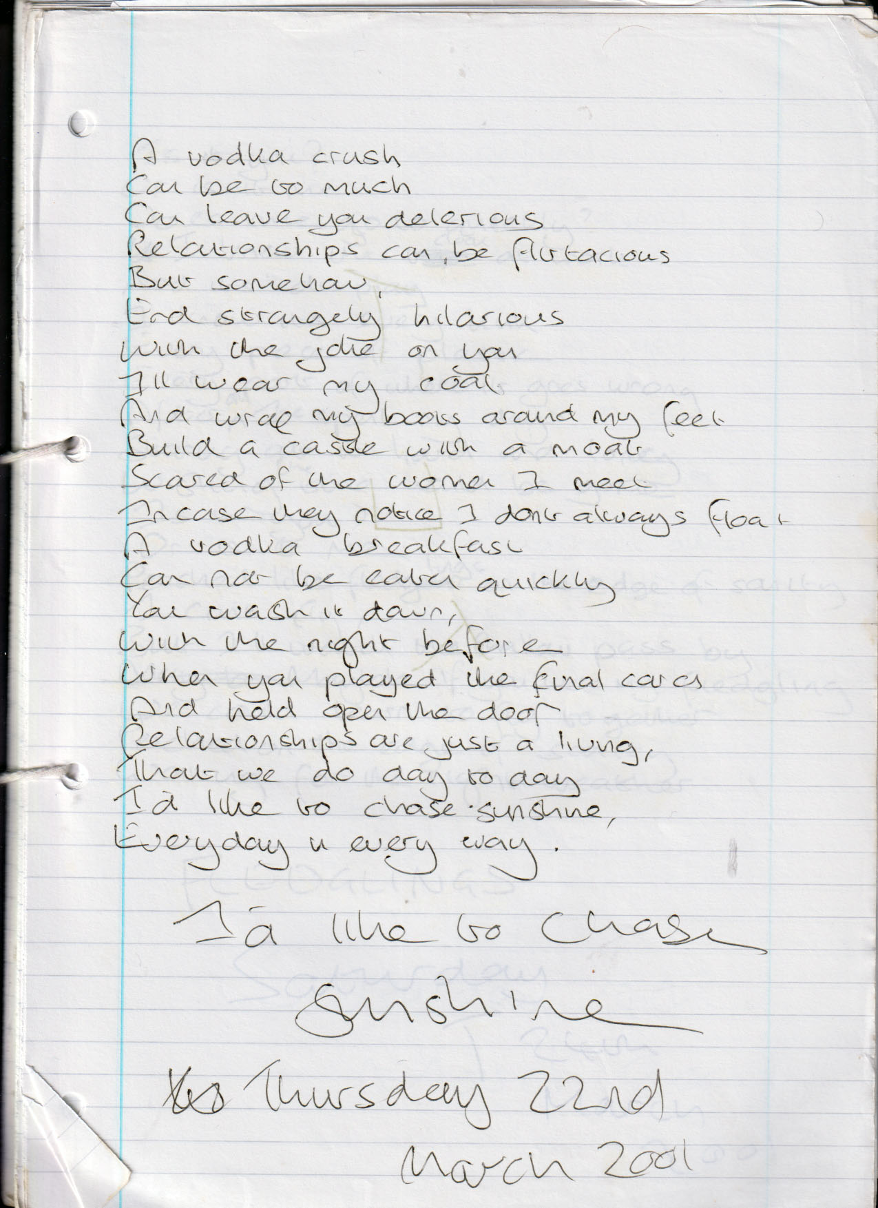 I’d Like to Chase Sunshine – Thursday 22nd March 2001