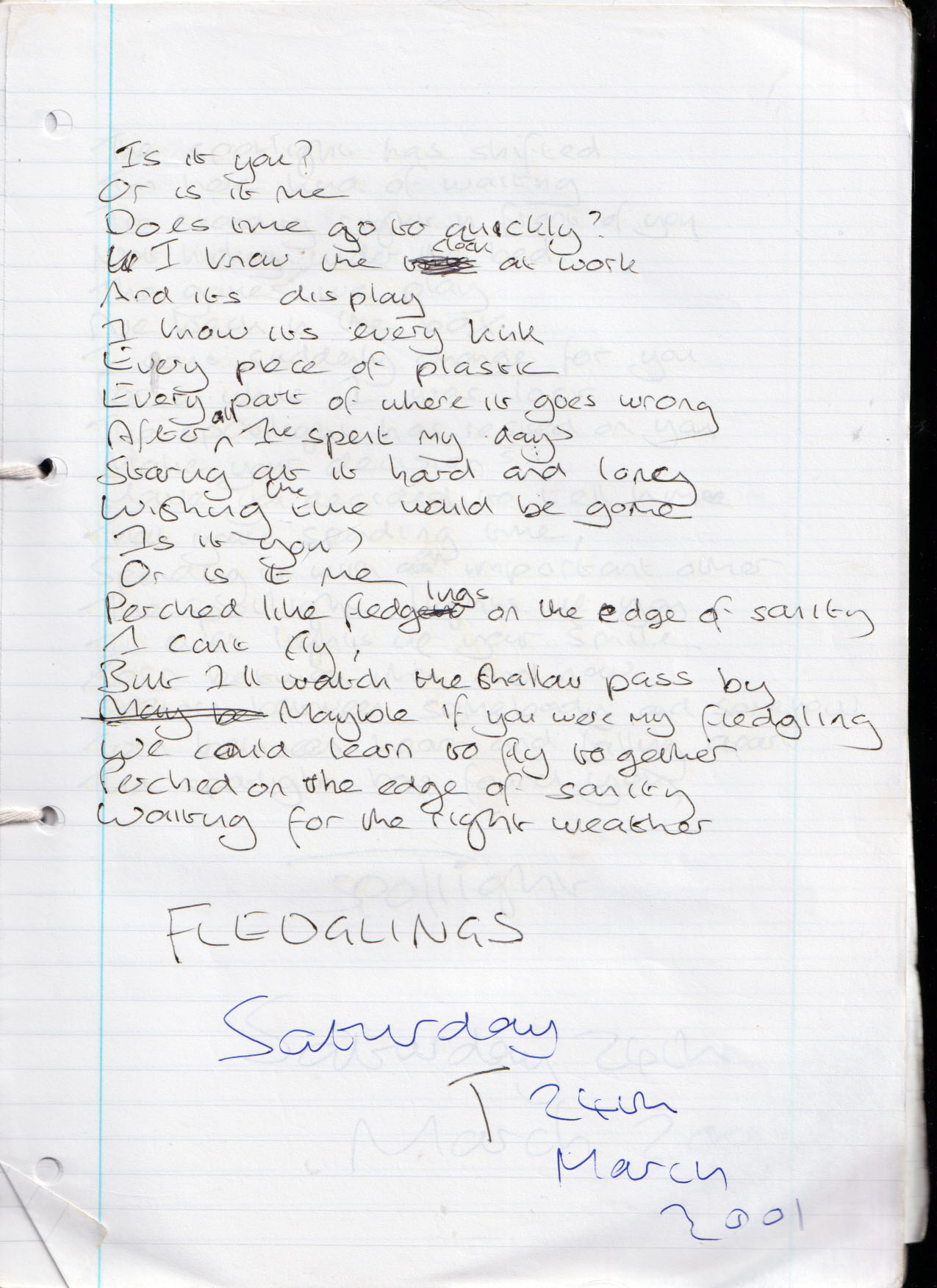 Fledglings – Saturday 24th March 2001