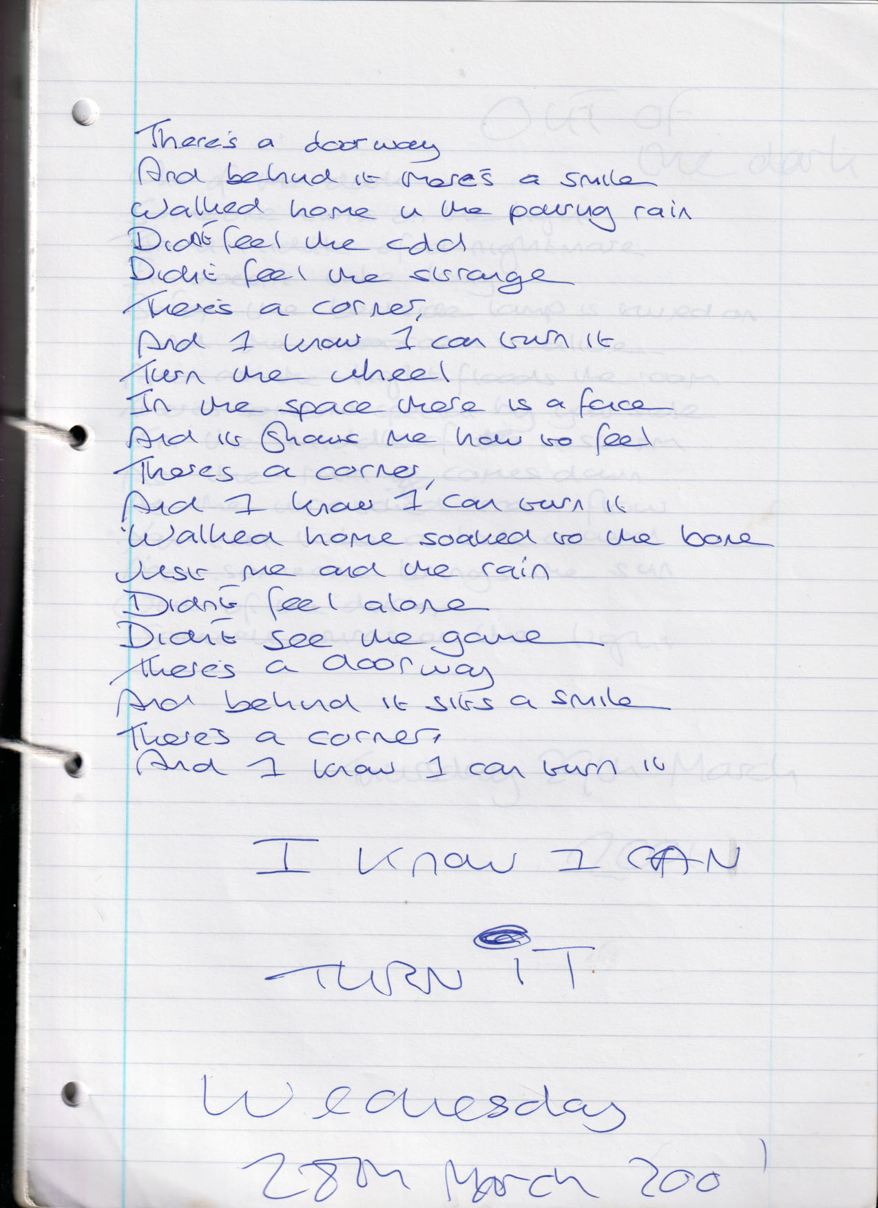 I Know I Can Turn It – Wednesday 28th March 2001