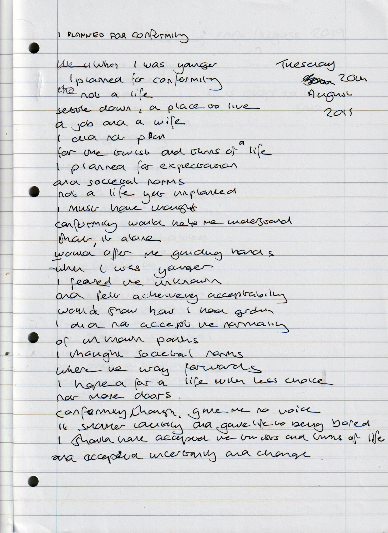 I Planned for Conformity – Tuesday 20th August 2019