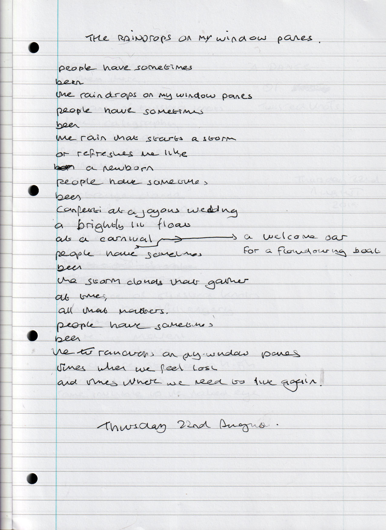 The Raindrops on My Window Panes – Thursday 22nd August 2019