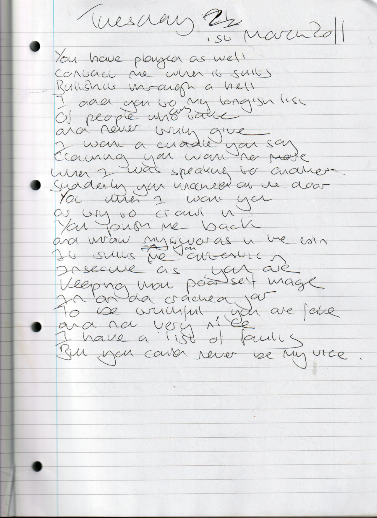 You Could Never Be My Vice – Tuesday 1st March 2011