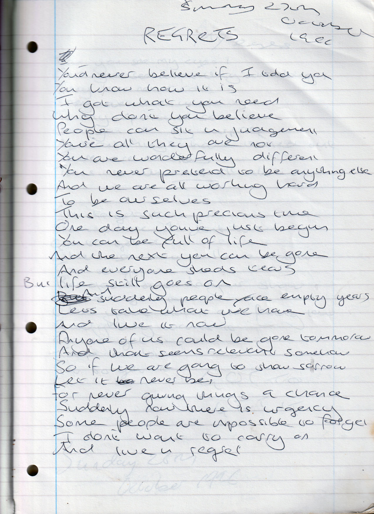 Regrets – Sunday 27th October 1996