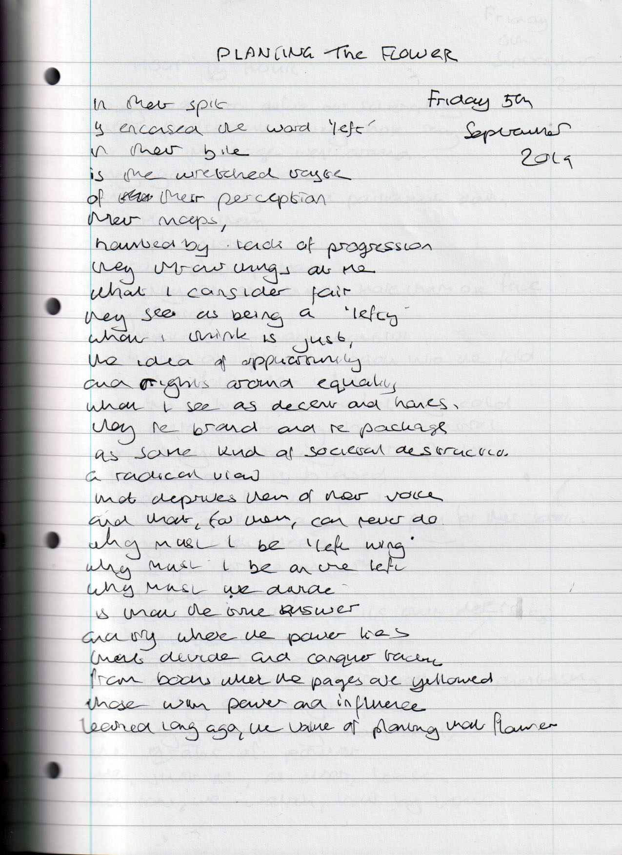 Planting the Flower – Friday 5th September 2019