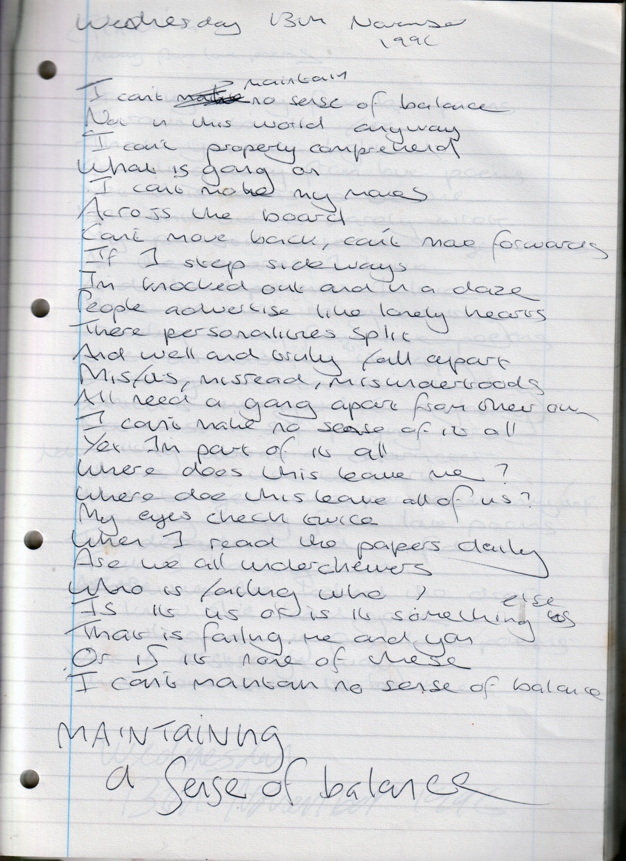 Maintaining a Sense of Balance – Wednesday 13th November 1996