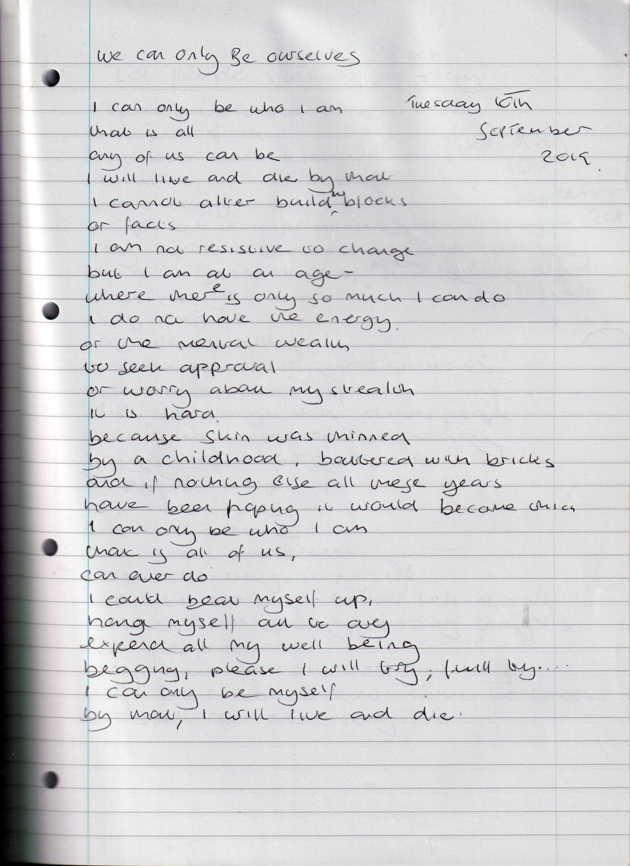 We Can Be Only Ourselves – Tuesday 10th September 2019