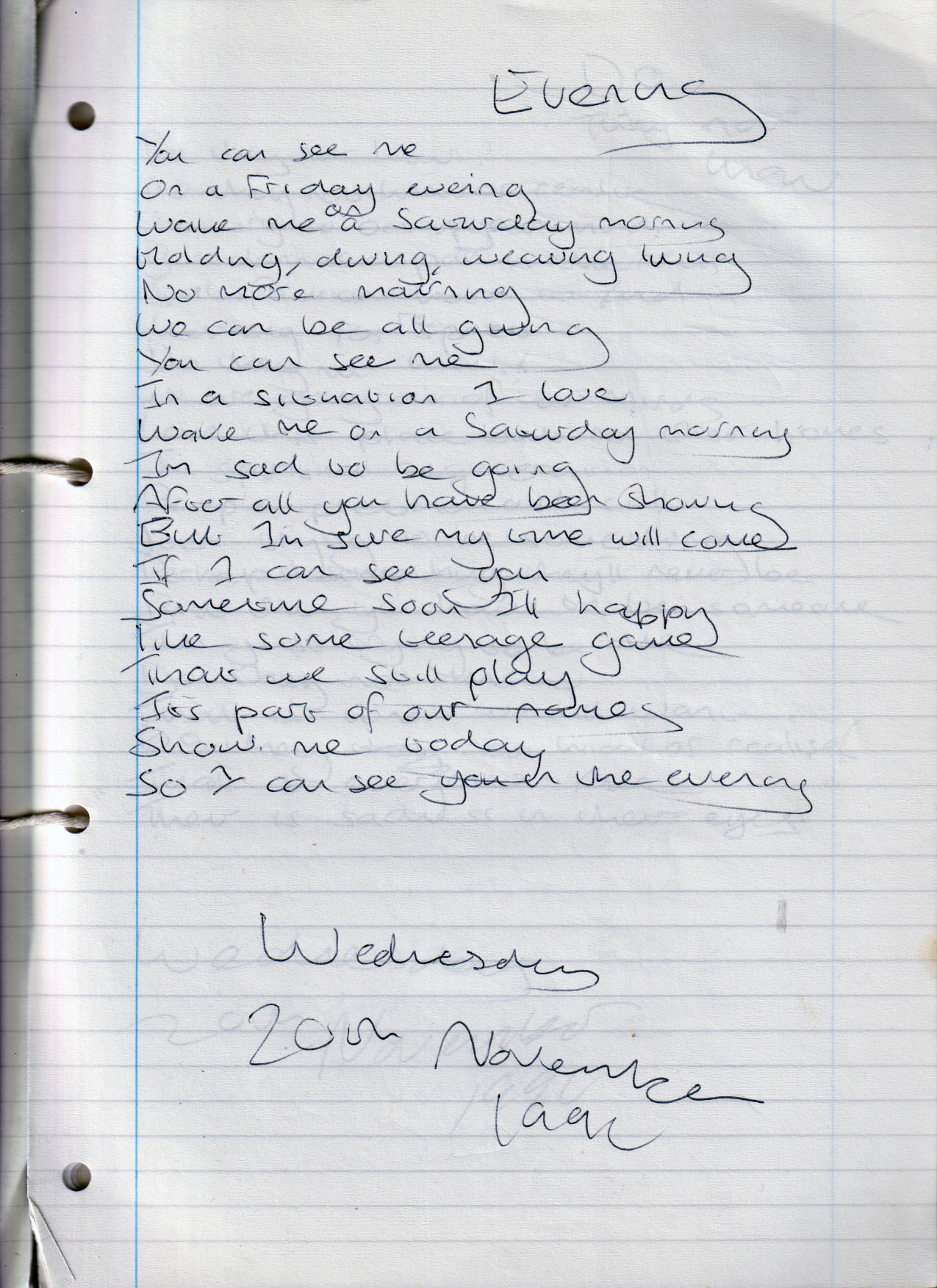 Evening – Wednesday 20th November 1996