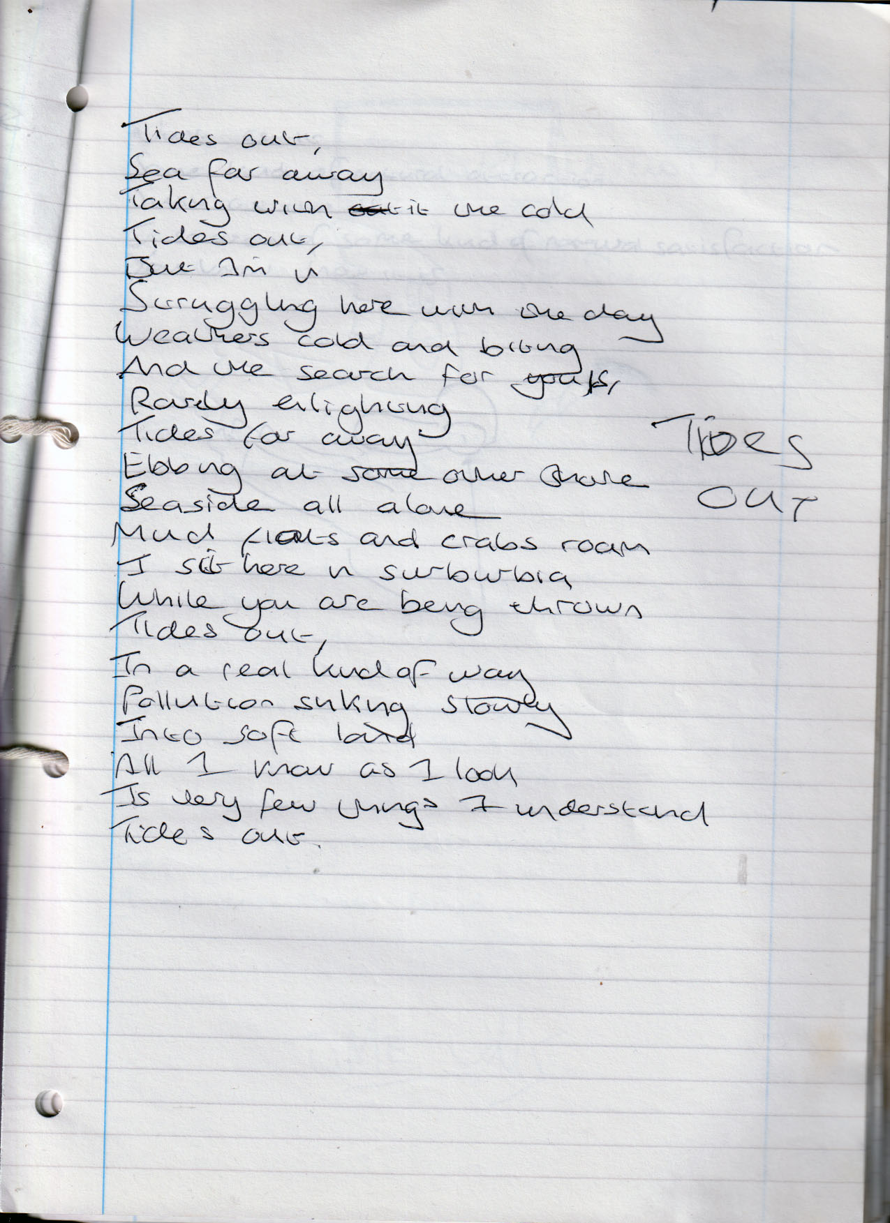 Tide’s Out – Written either Wednesday 27th November 1996 or Thursday 28th November 1996