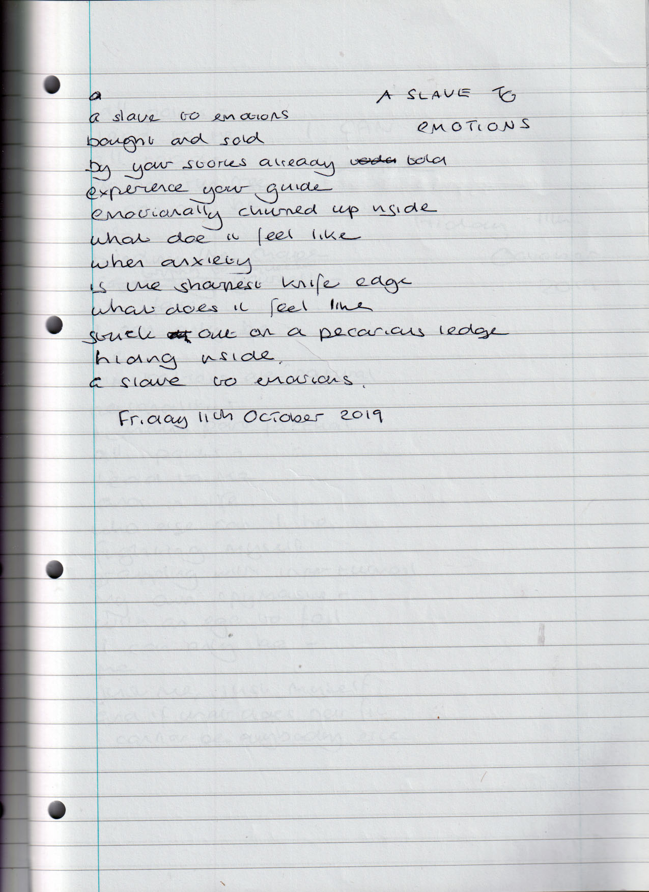 A Slave to My Emotions – Written Friday 11th October 2019 (Aged 44)