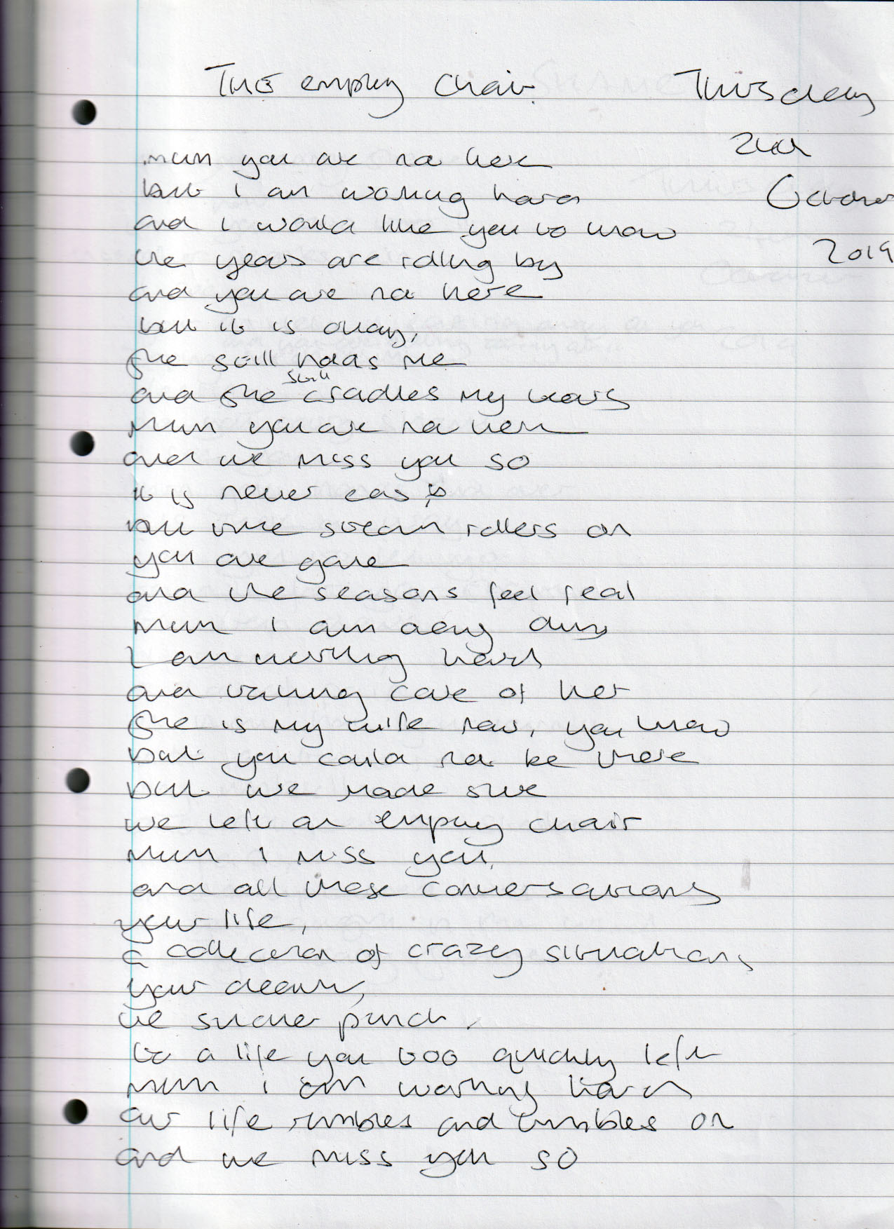 The Empty Chair – Written Thursday 24th October (Aged 44)