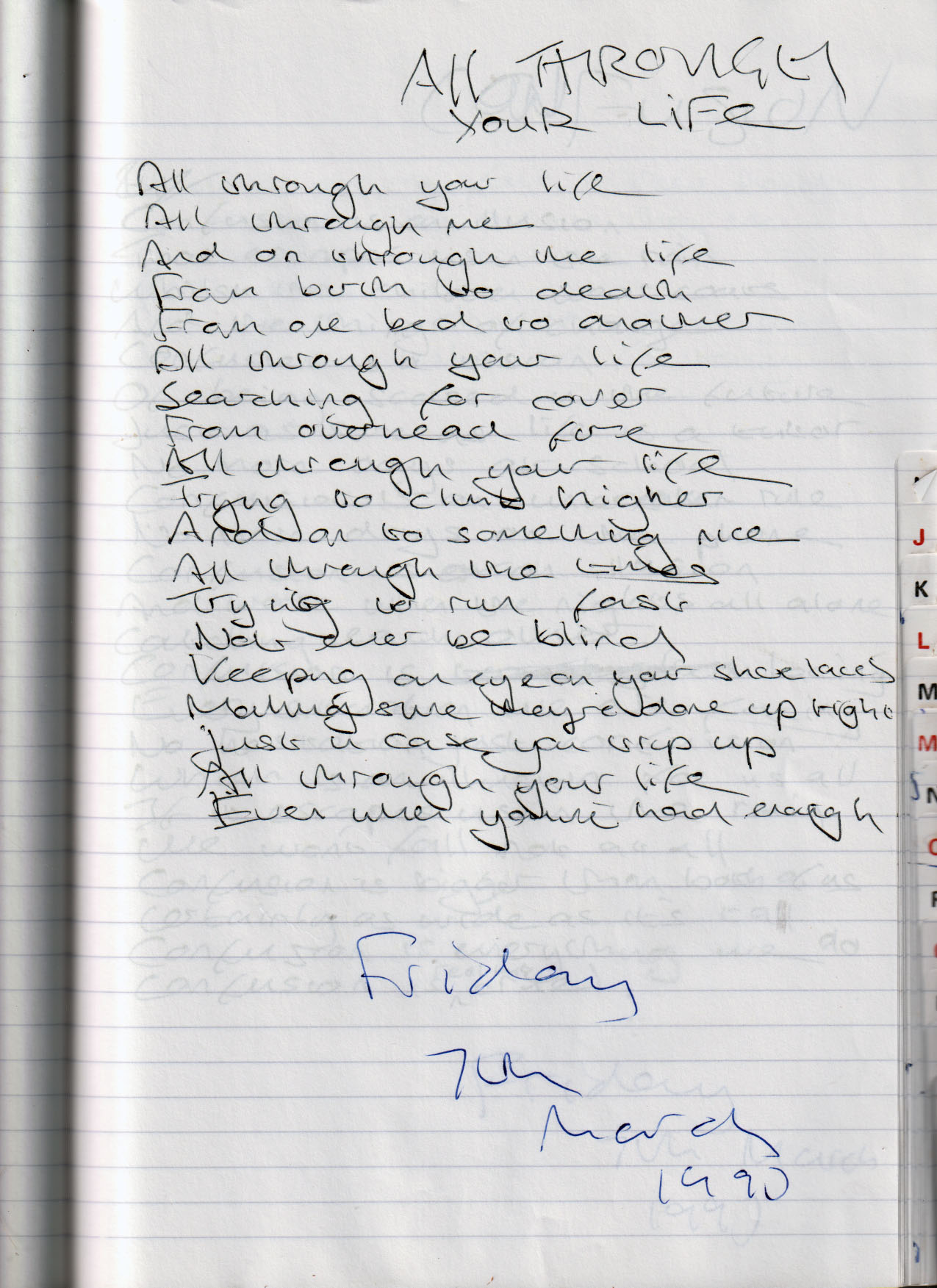 All Through Your Life – Written Friday 7th March 1997 (Aged 22)