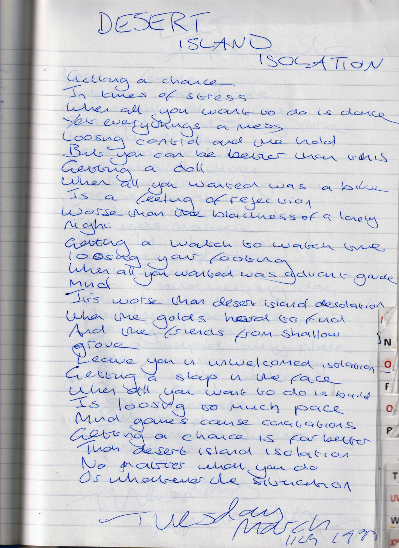 Desert Island Isolation – Written Tuesday 11th March 1997 (Aged 22)