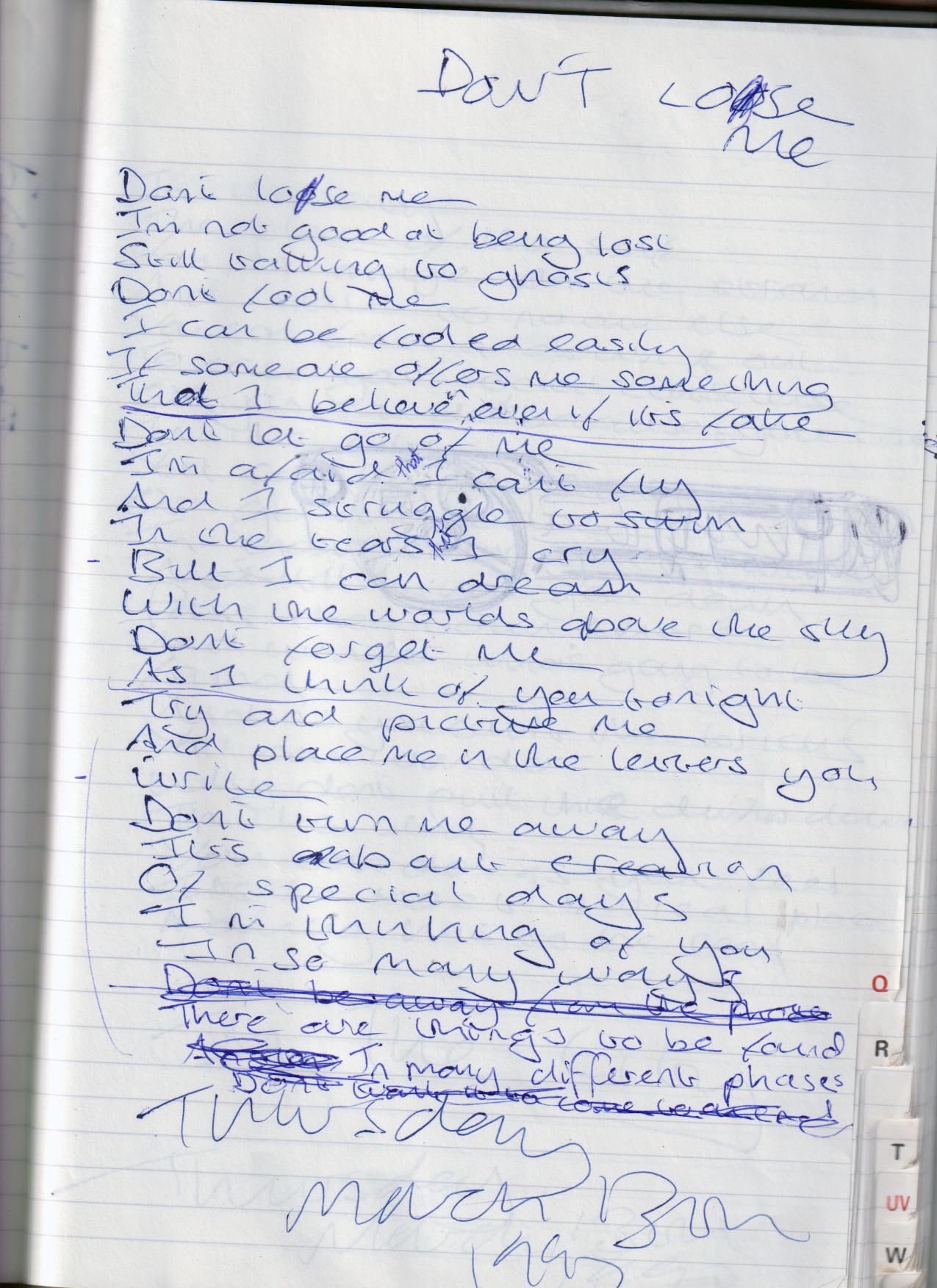 Don’t Lose Me – Written Thursday 13th March 1997 (Aged 22)