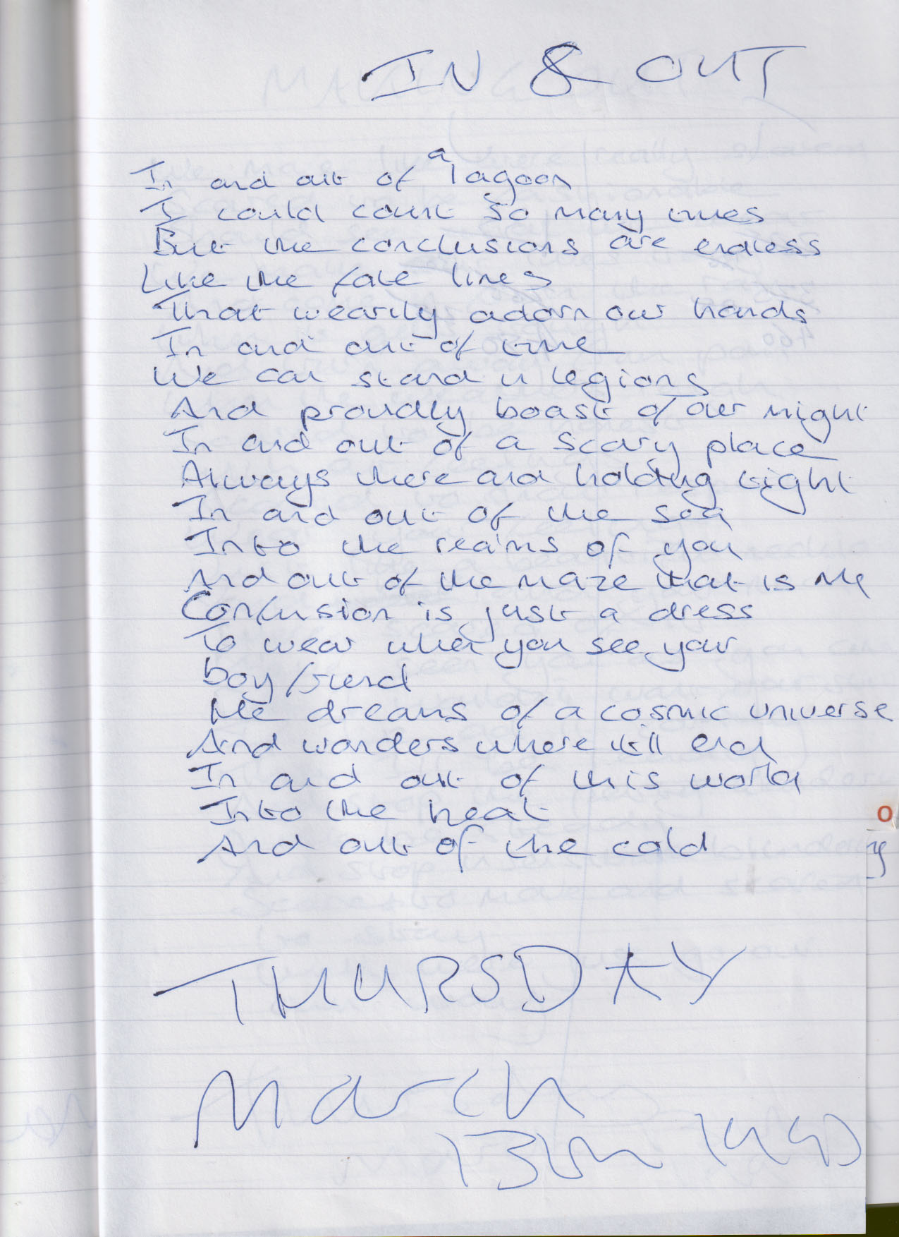 In and Out – Written Thursday 13th March 1997 (Aged 22)
