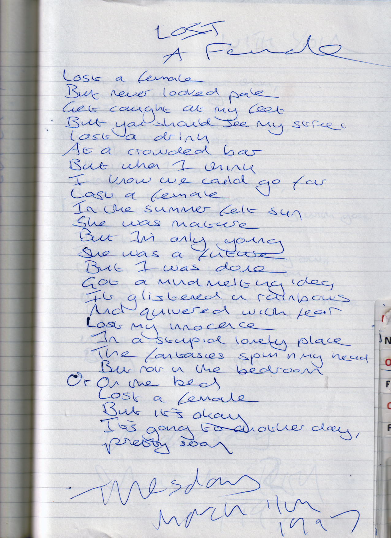 Lost a Female – Written Tuesday 11th March 1997 (Aged 22)
