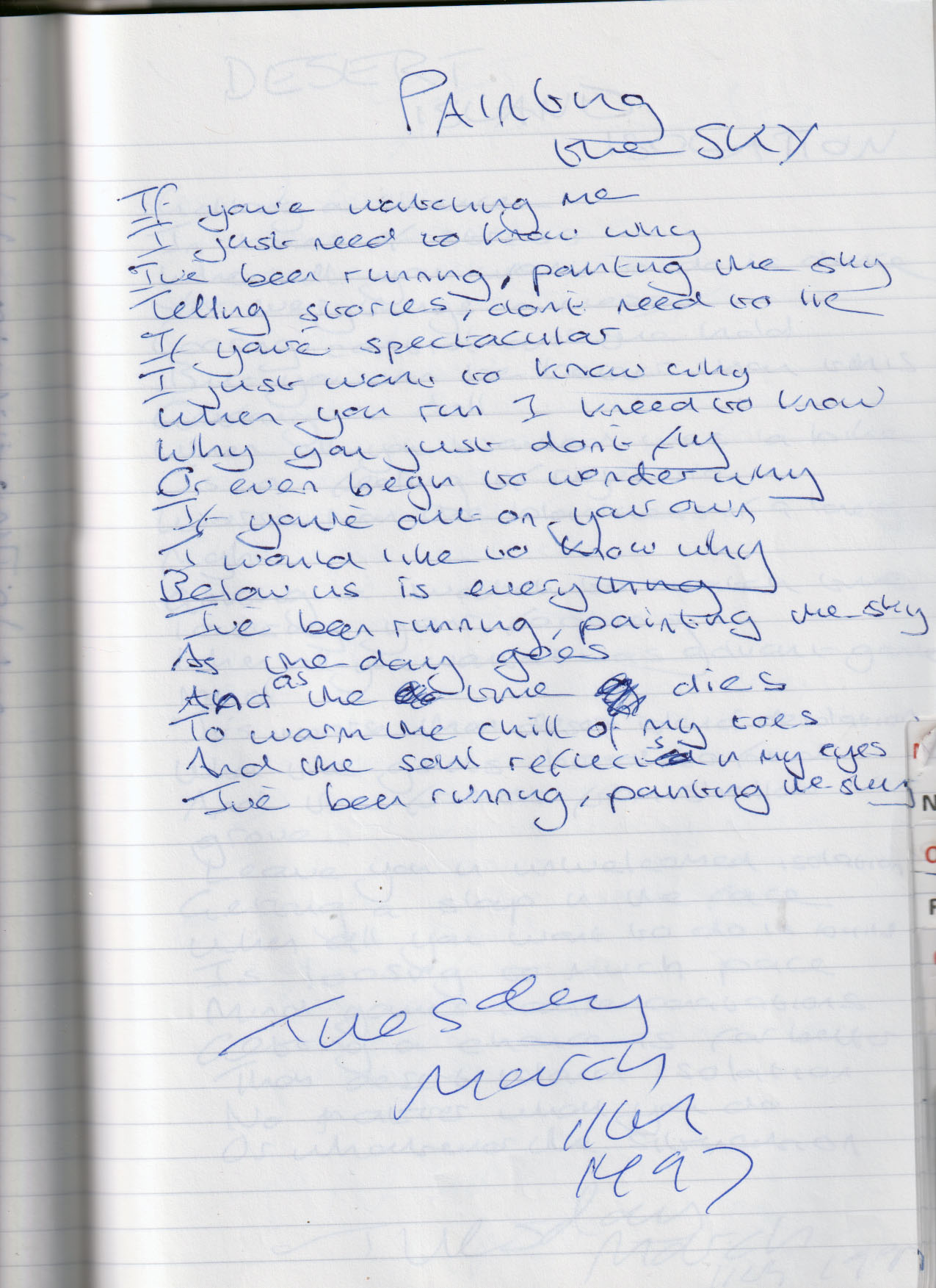 Painting the Sky – Written Tuesday 11th March 1997 (Aged 22)