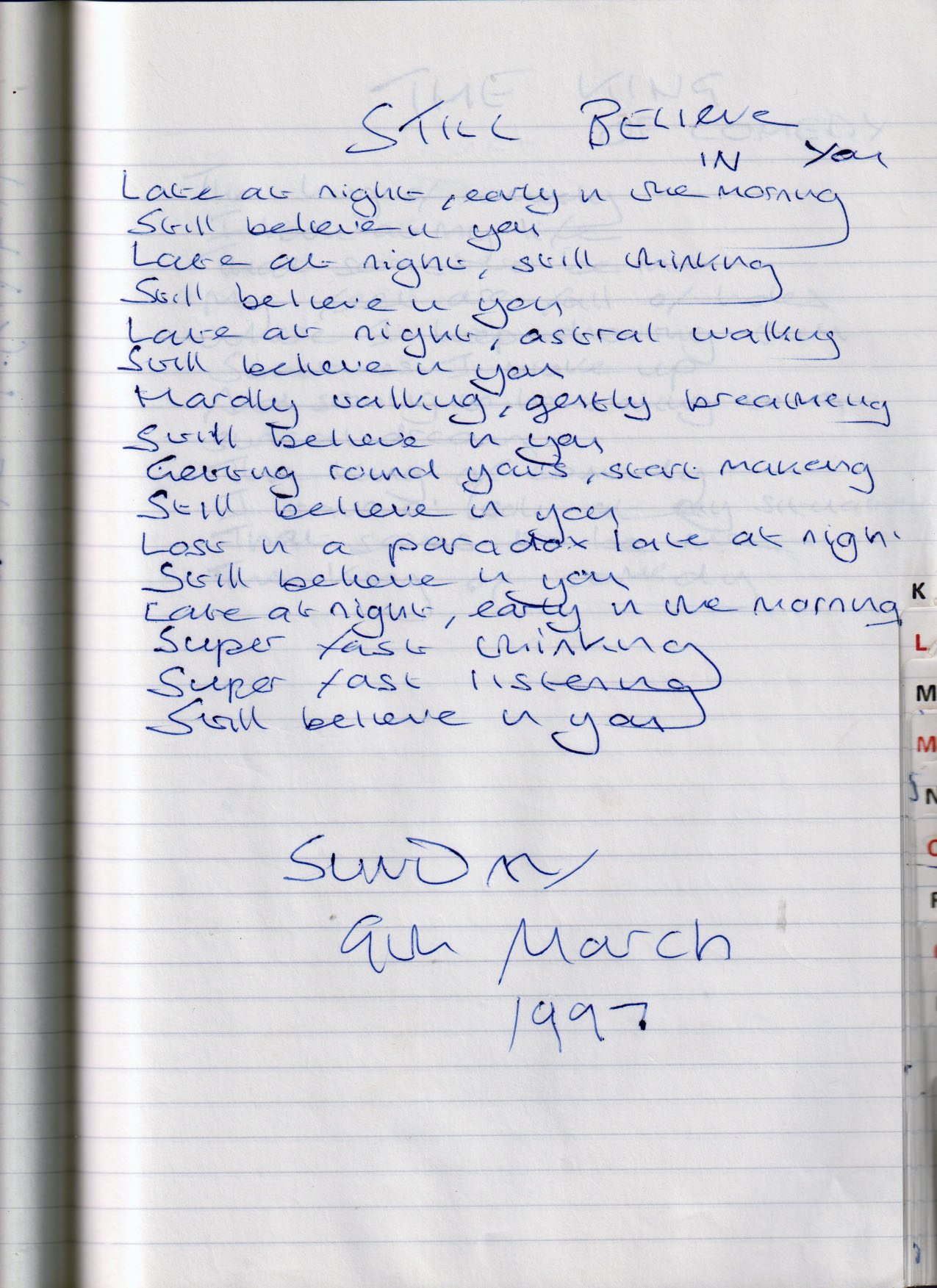 Still Believe in You – Written Sunday 9th March 1997 (Aged 22)