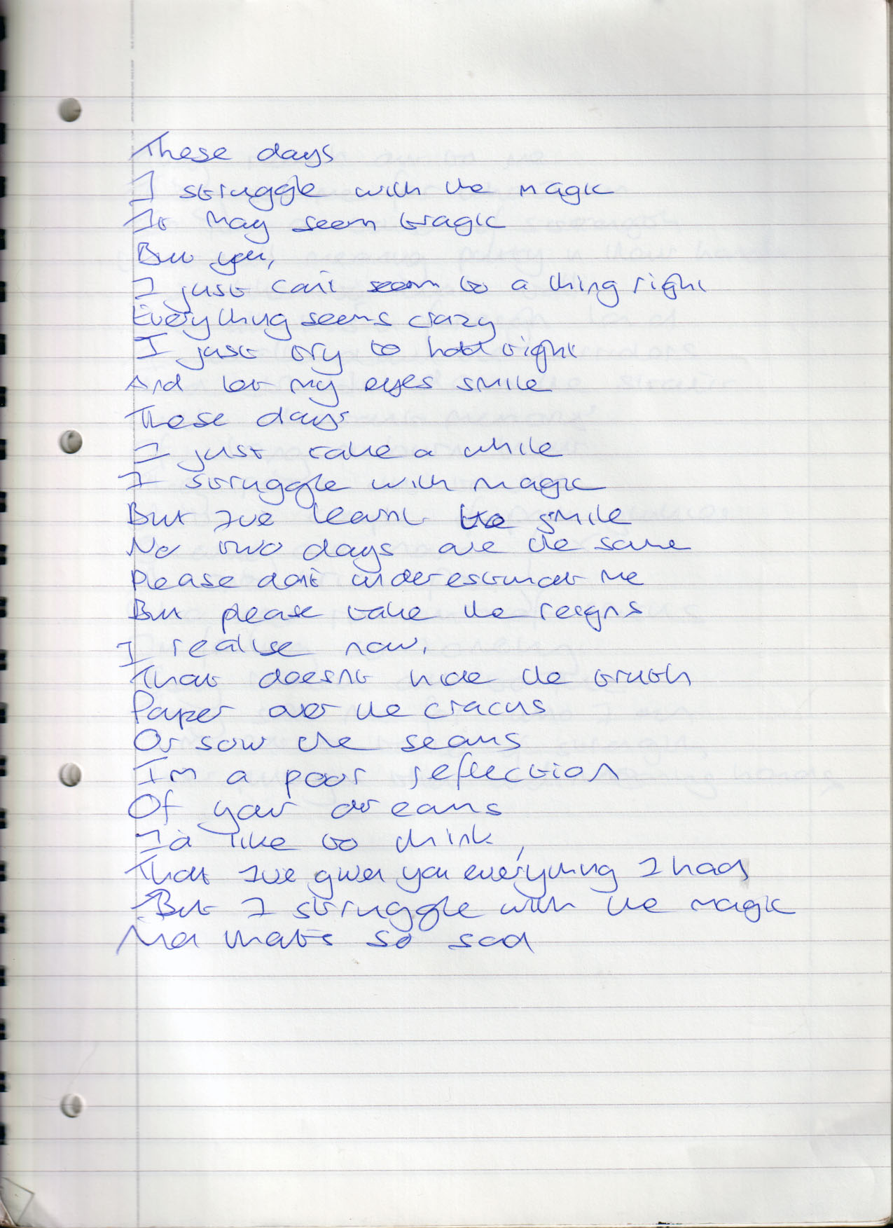 I Struggle With the Magic (Originally Untitled) – Written April 2005 (Aged 30)
