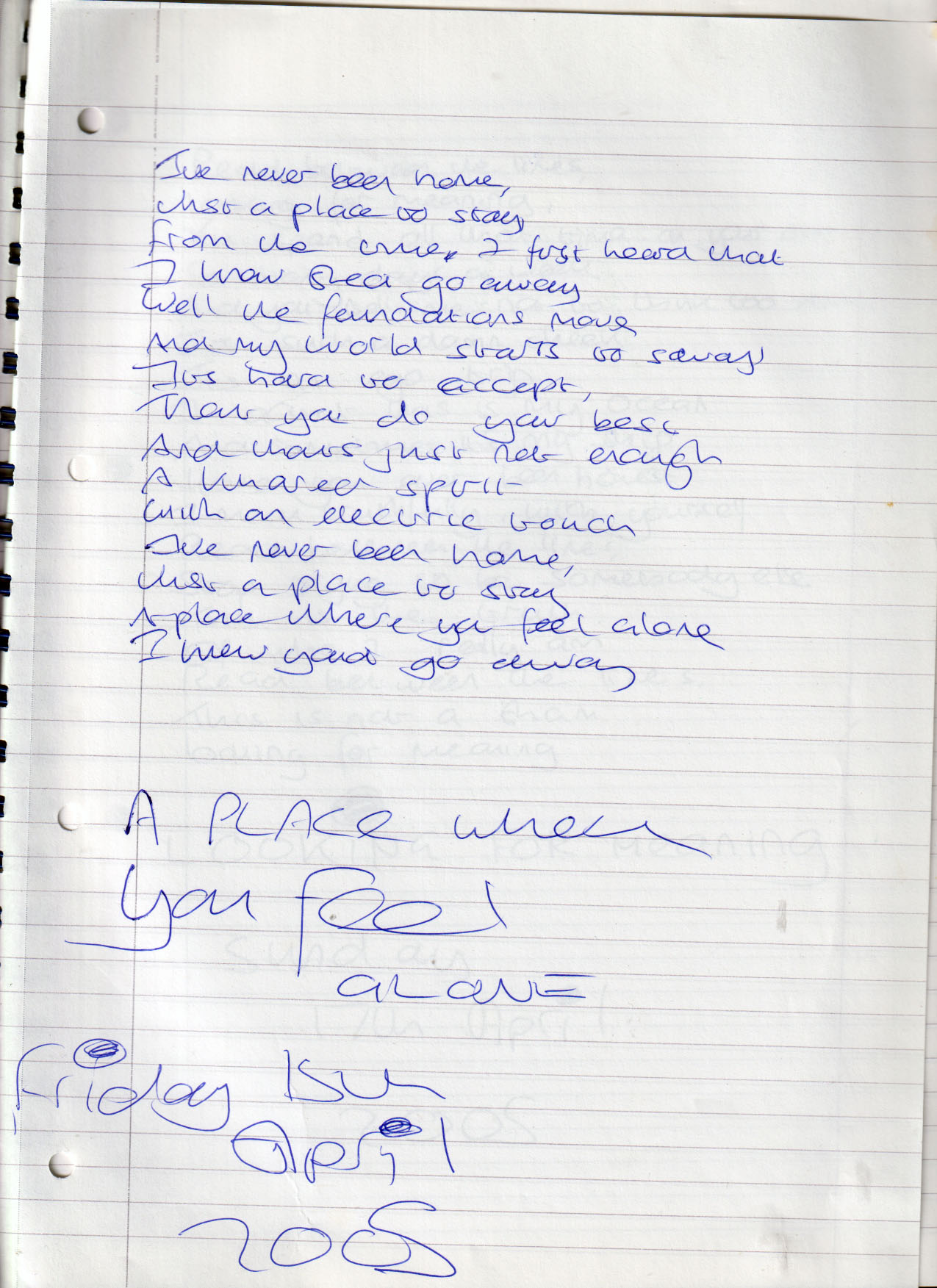 A Place When You Feel Alone – Written Friday 15th April 2005 (Aged 30)