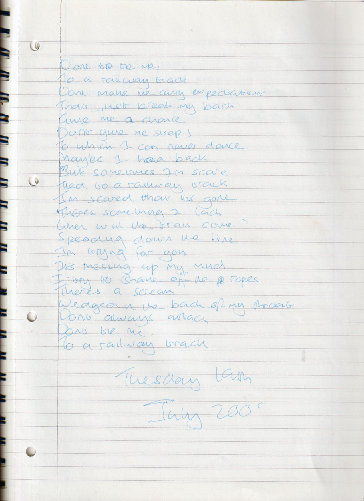 Railway Track (Originally Untitled) – Written Friday 16th July 2005