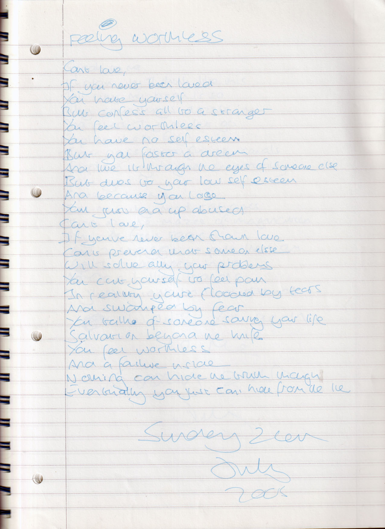 Feeling Worthless – Written Sunday 24th July 2005 (Aged 30)