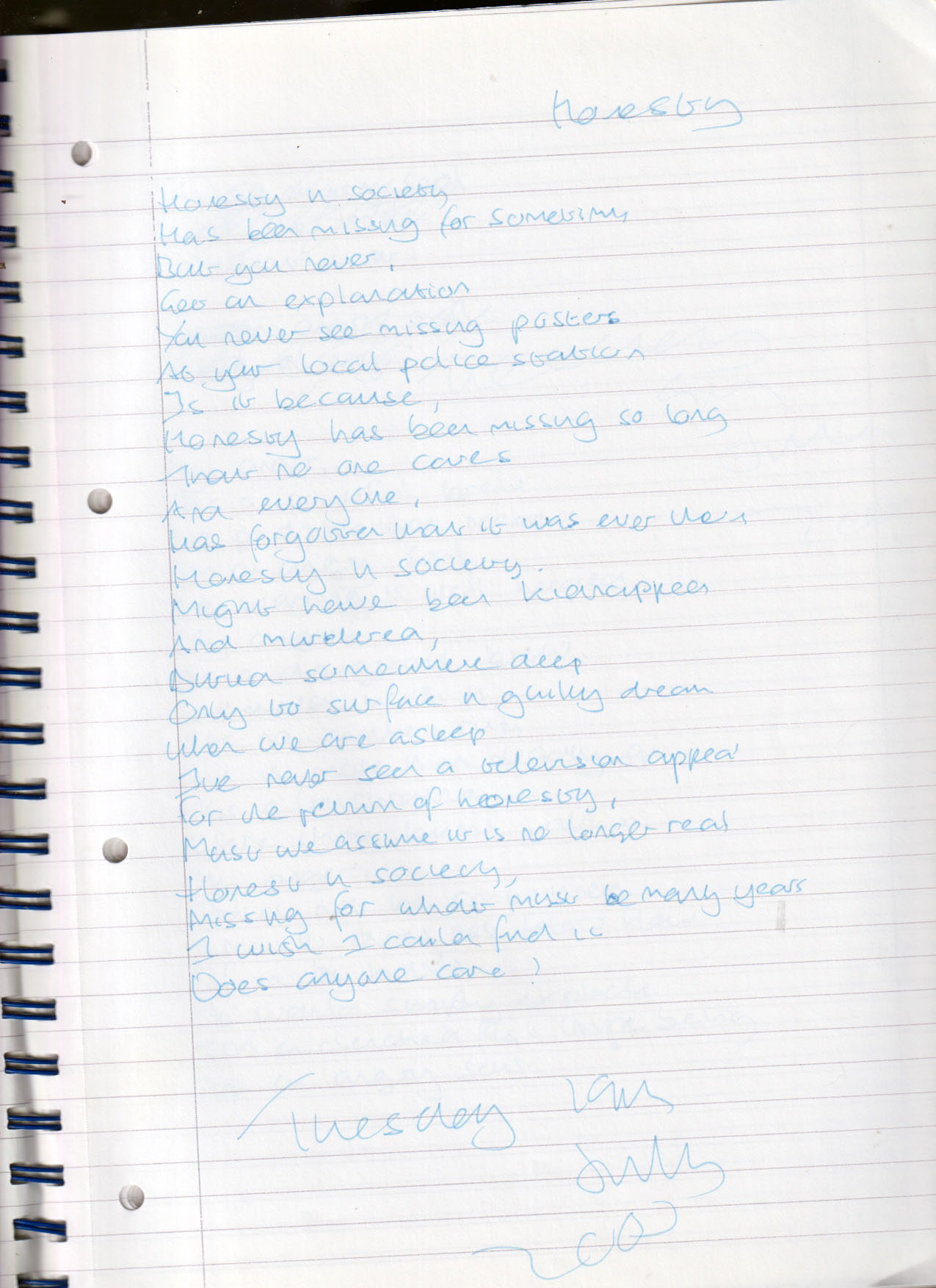 Honesty – Written Tuesday 19th July 2005 (Aged 30)