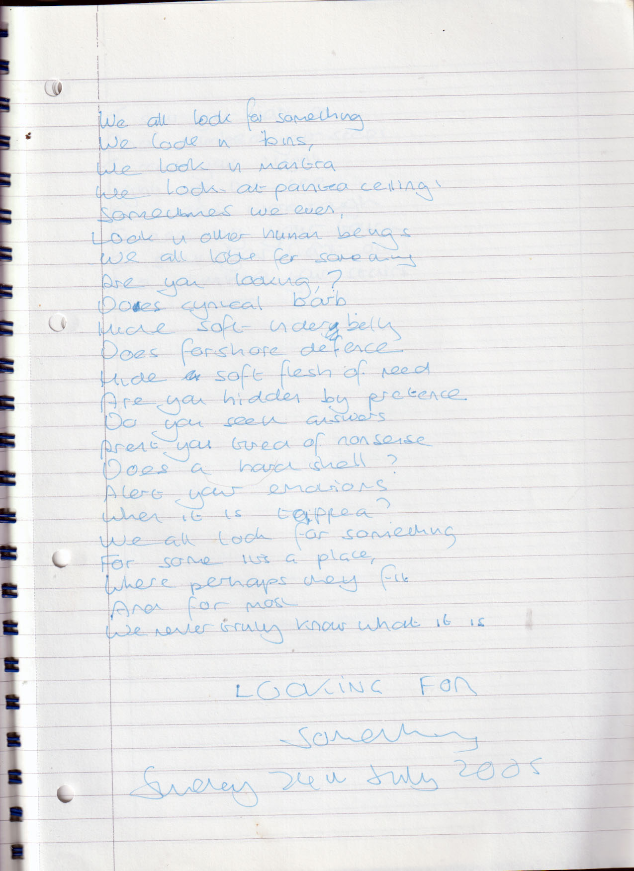 Looking for Something – Written Sunday 24th July 2005 (Aged 30)
