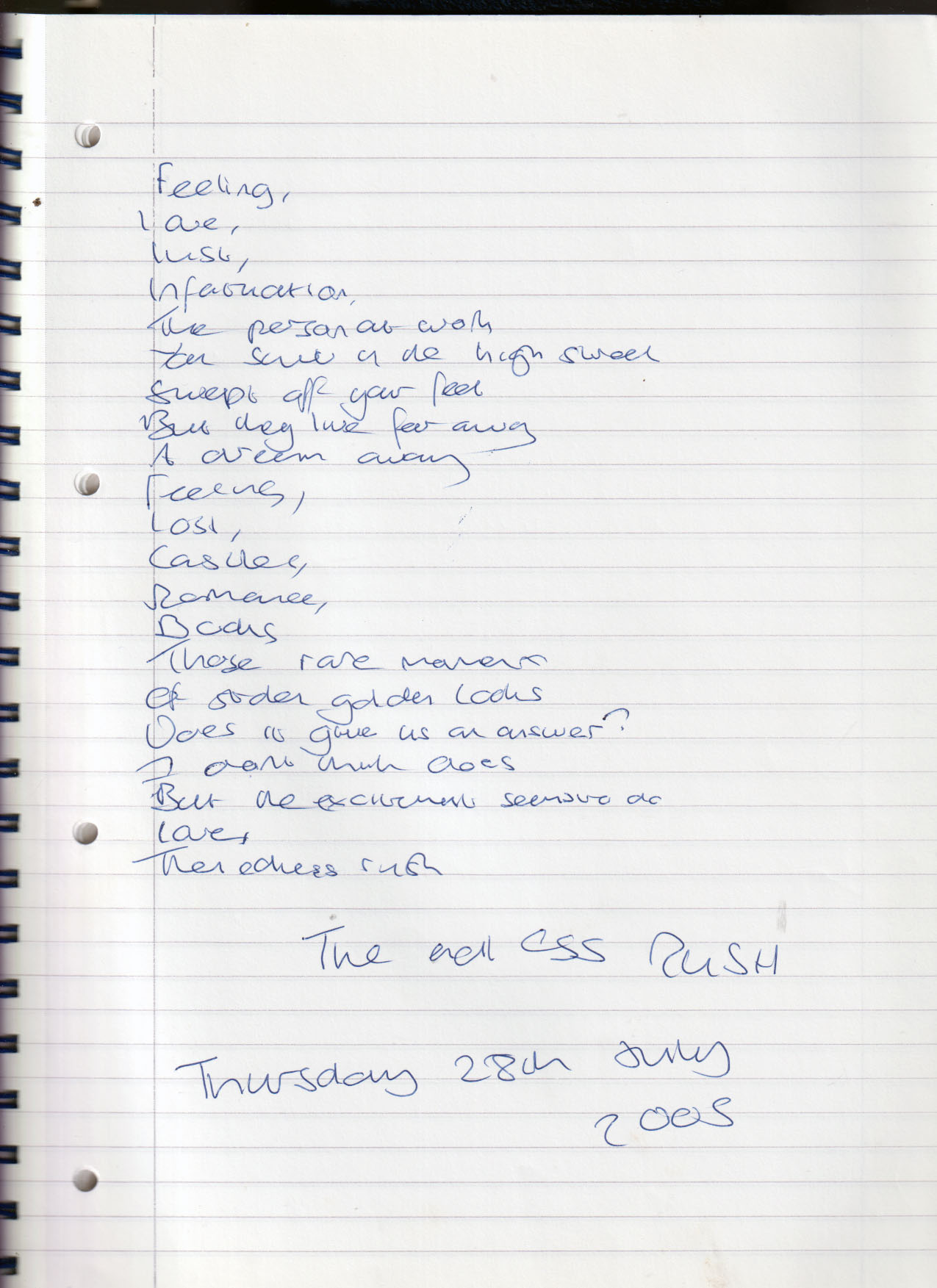 The Endless Rush – Written Thursday 28th July 2005 (Aged 30)