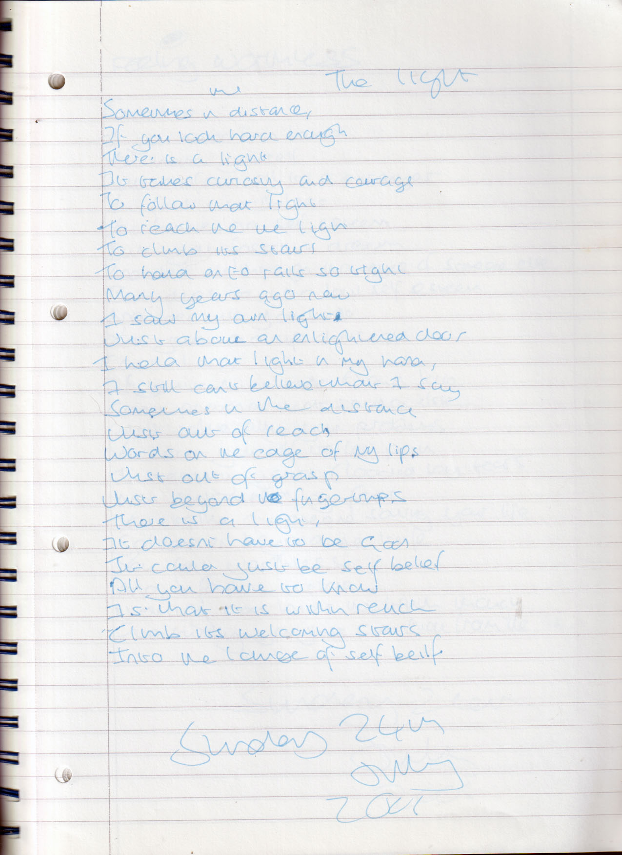 The Light – Written Sunday 24th July 2005 (Aged 30)