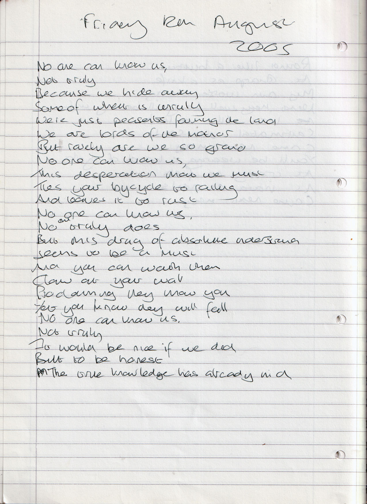 No One Can Know Us (Originally Untitled) – Written Friday 12th August 2005 (Aged 30)