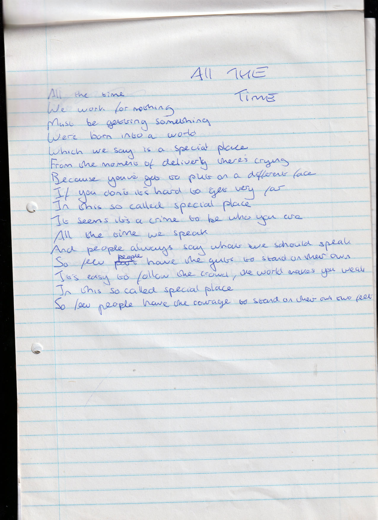 All The Time – Written December 1994 (Aged 19)