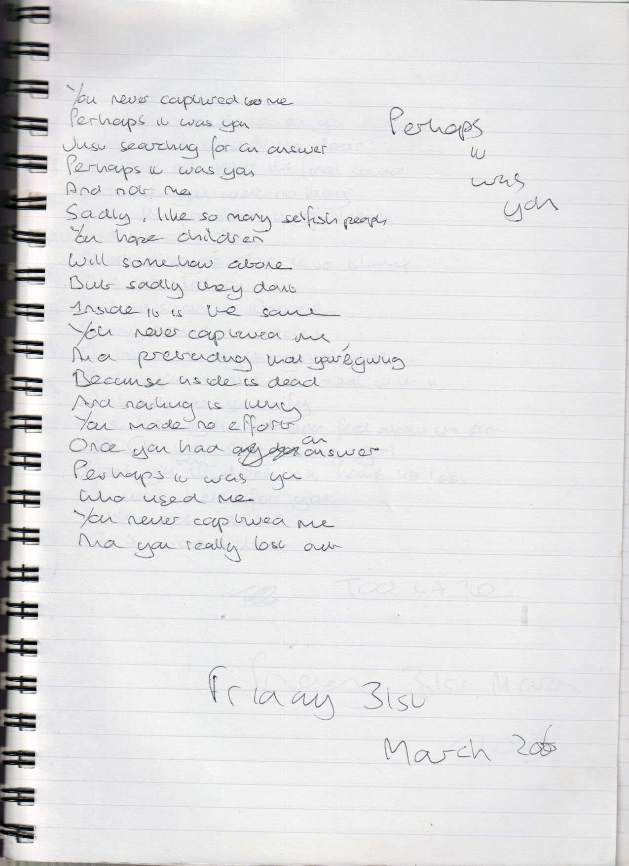 Perhaps It Was You – Written Friday 31st March 2006 (Aged 31)