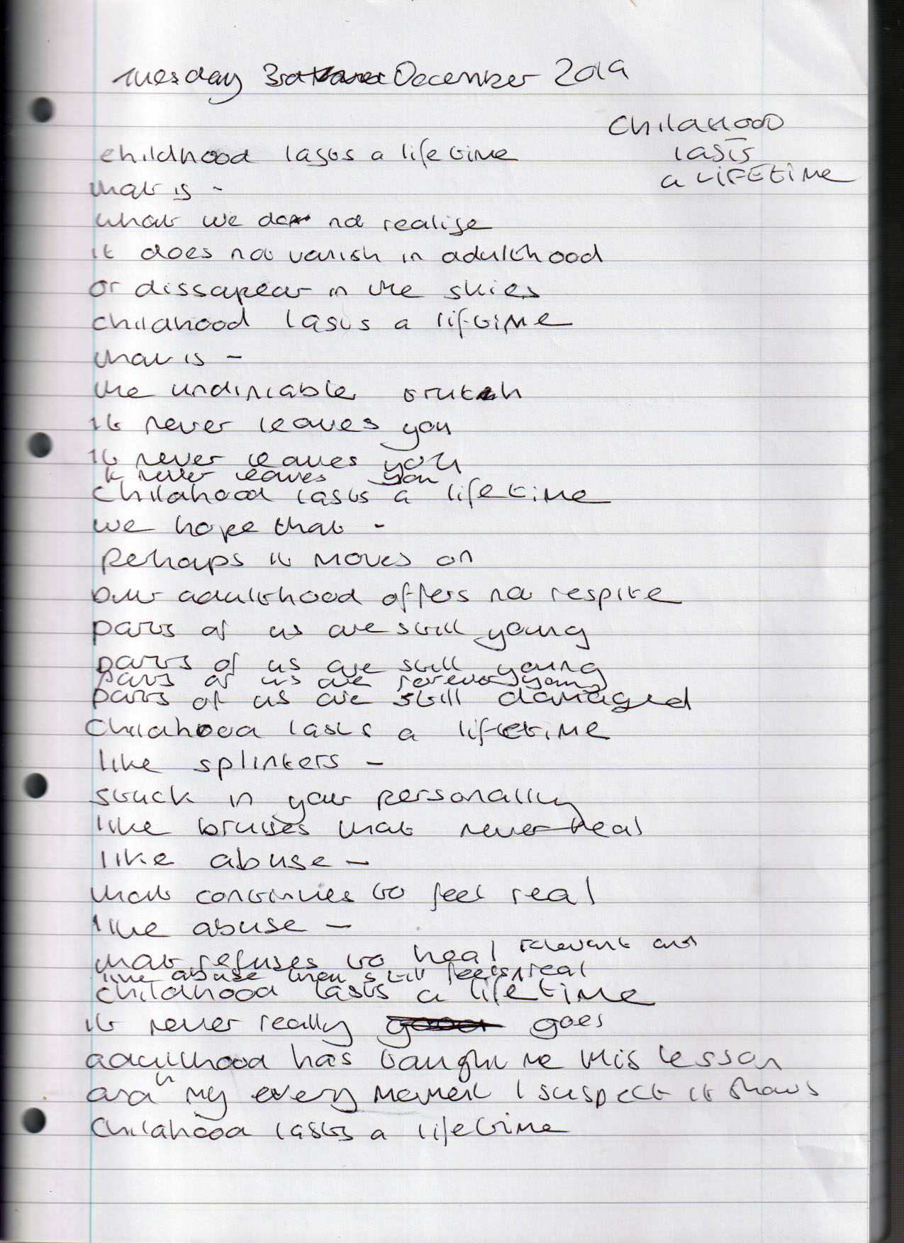 Childhood Lasts a Lifetime – Written Tuesday 3rd December 2019 (Aged 44)