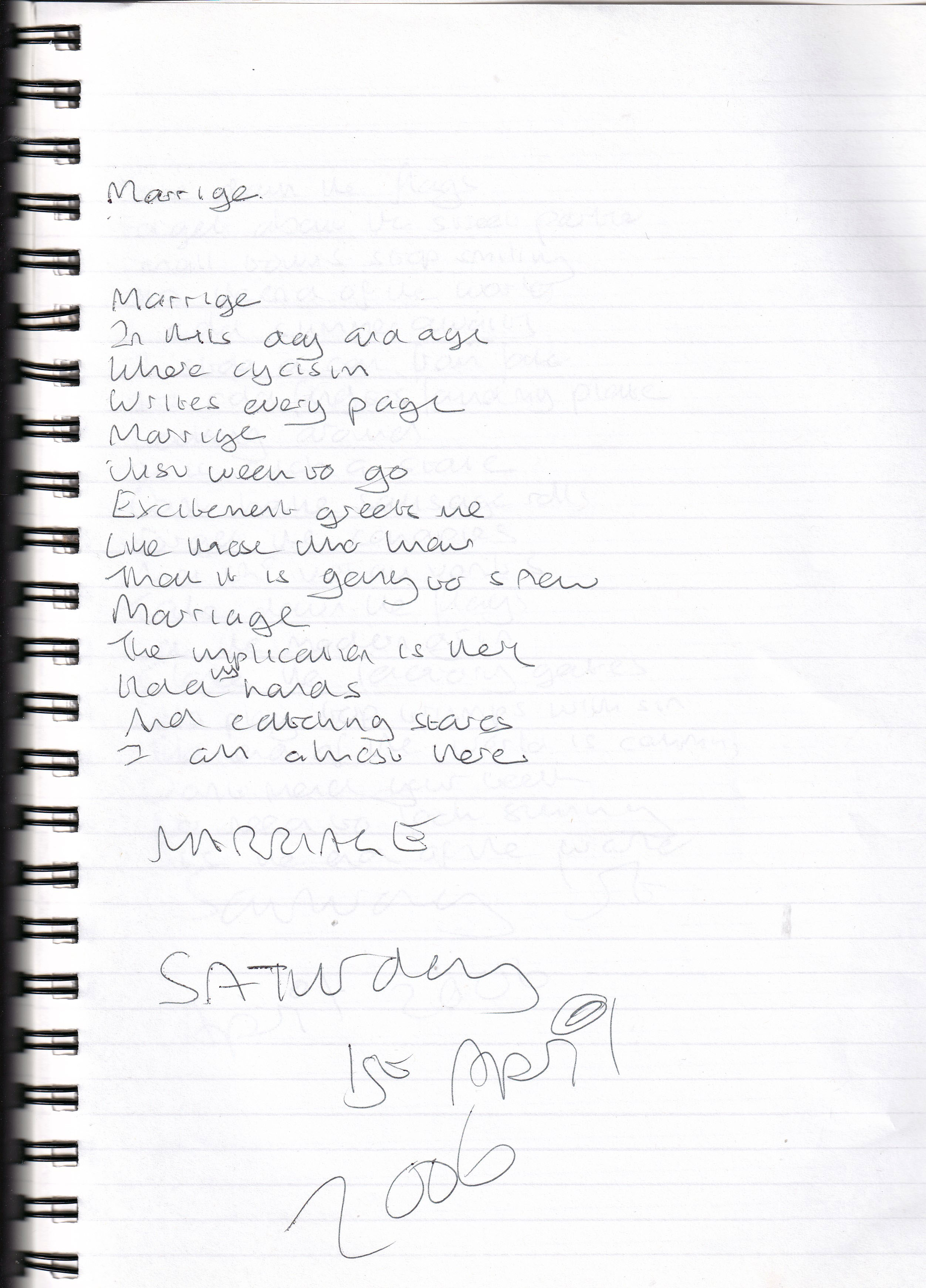 Marriage – Written Saturday 1st April 2006 (Aged 31)