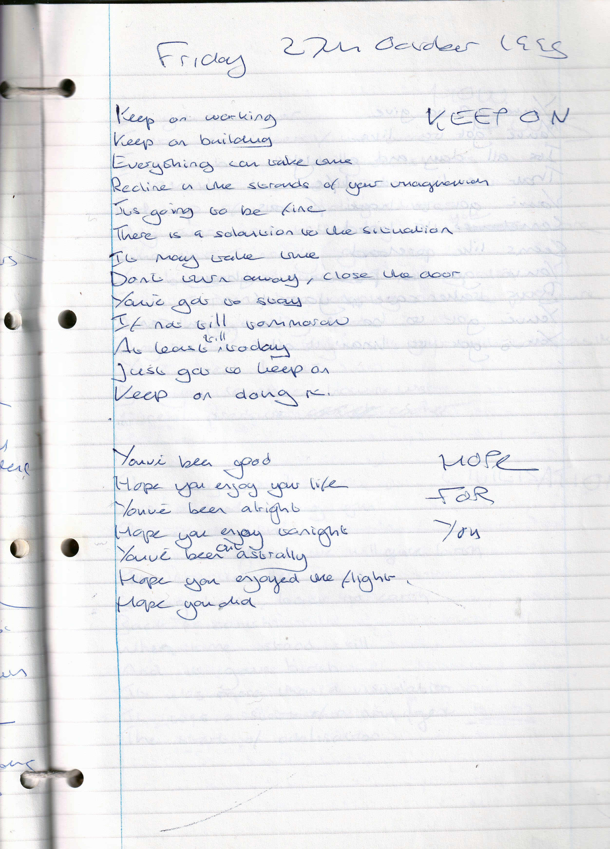 Hope For You – Written Friday 27th October 1995 (Aged 20)