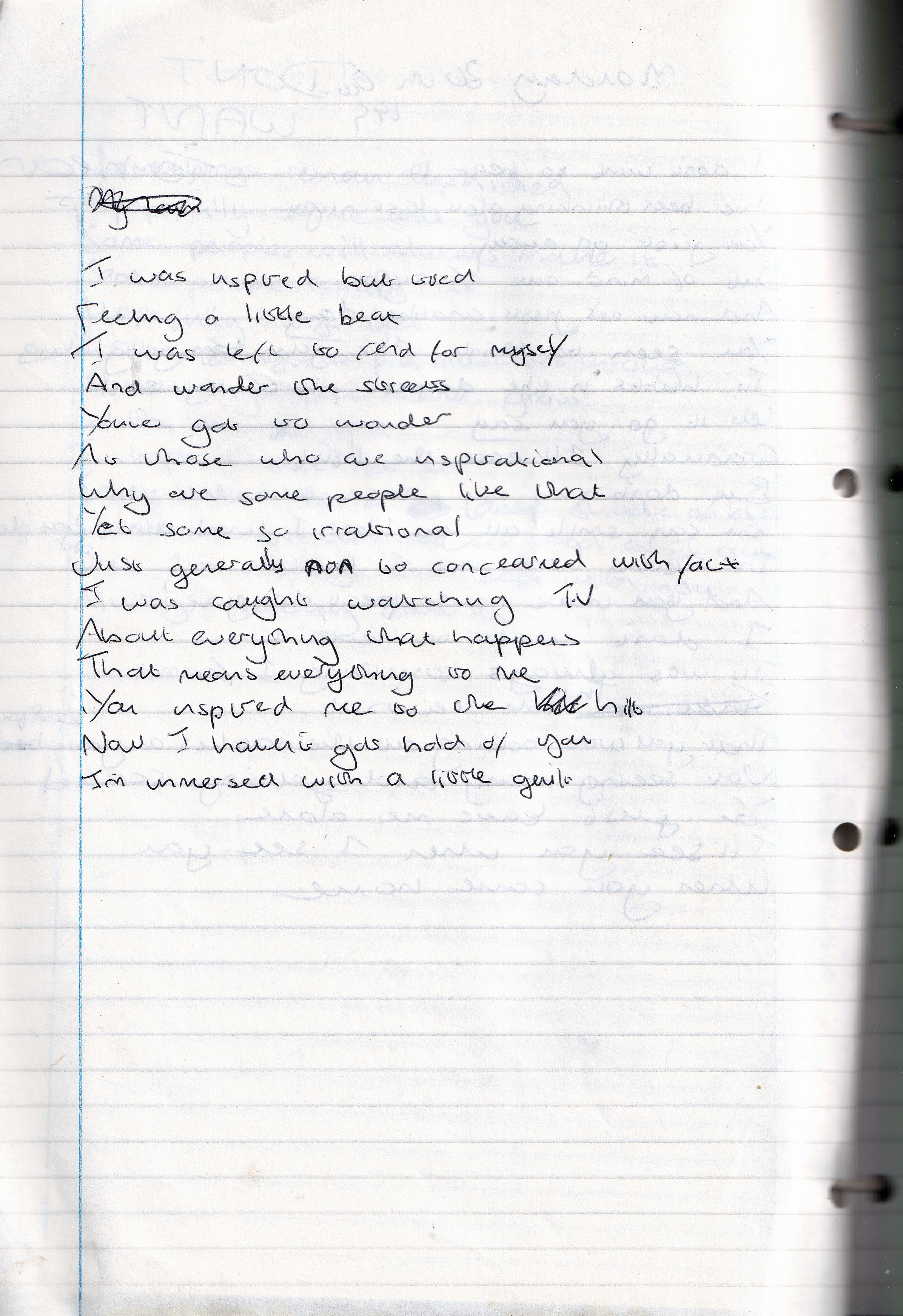 Inspired But Tired (Originally Untitled and Unfinished) – Written November 1995 (Aged 20)