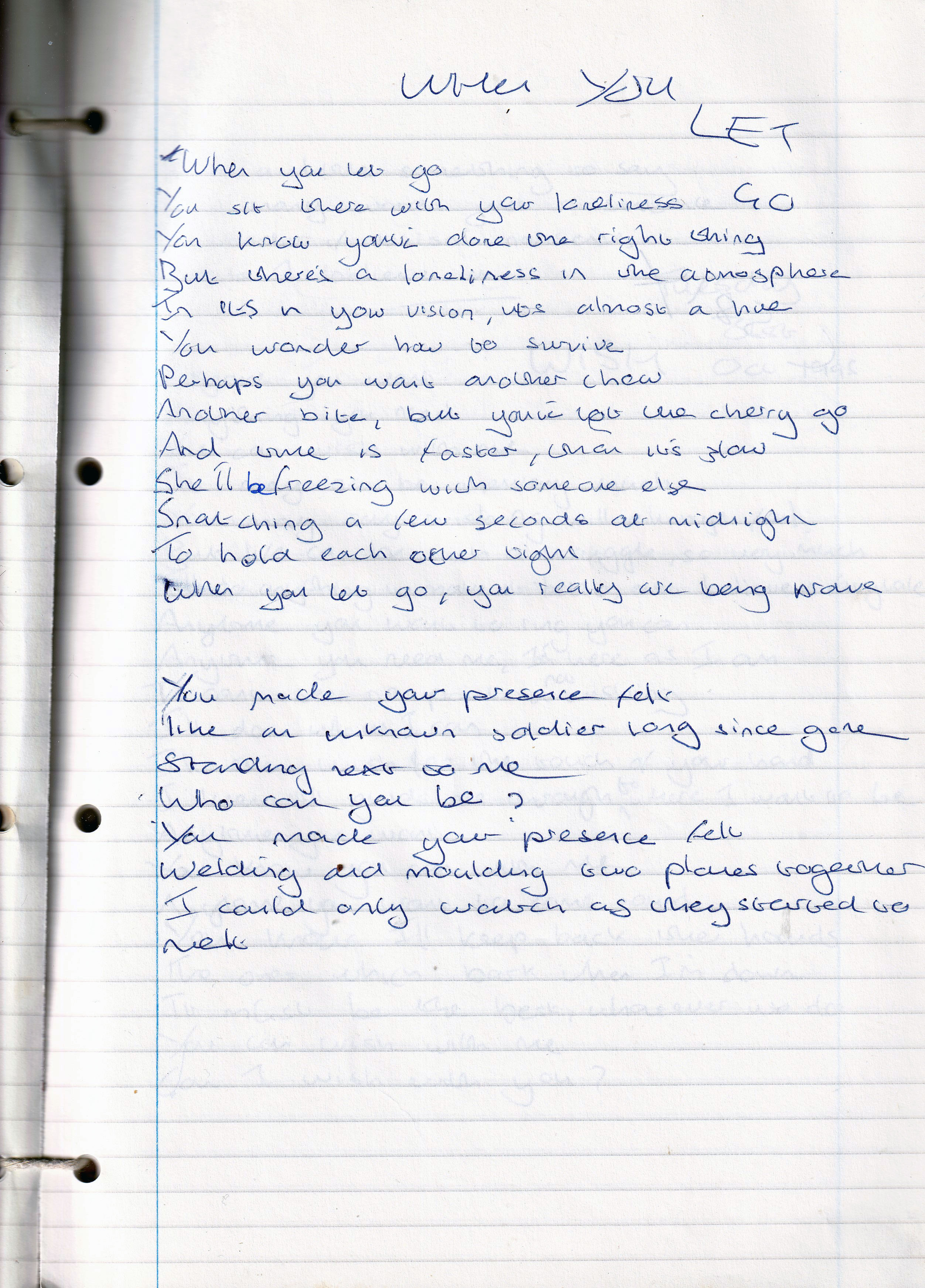 When You Let Go – Written Monday 30th October 1995 (Aged 20)